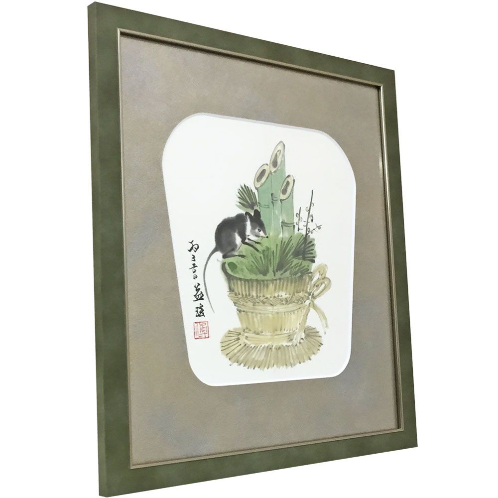 傅益瑶さんの墨彩画。作品の形状に合わせて、マットに特殊形状の窓抜きを施しました。