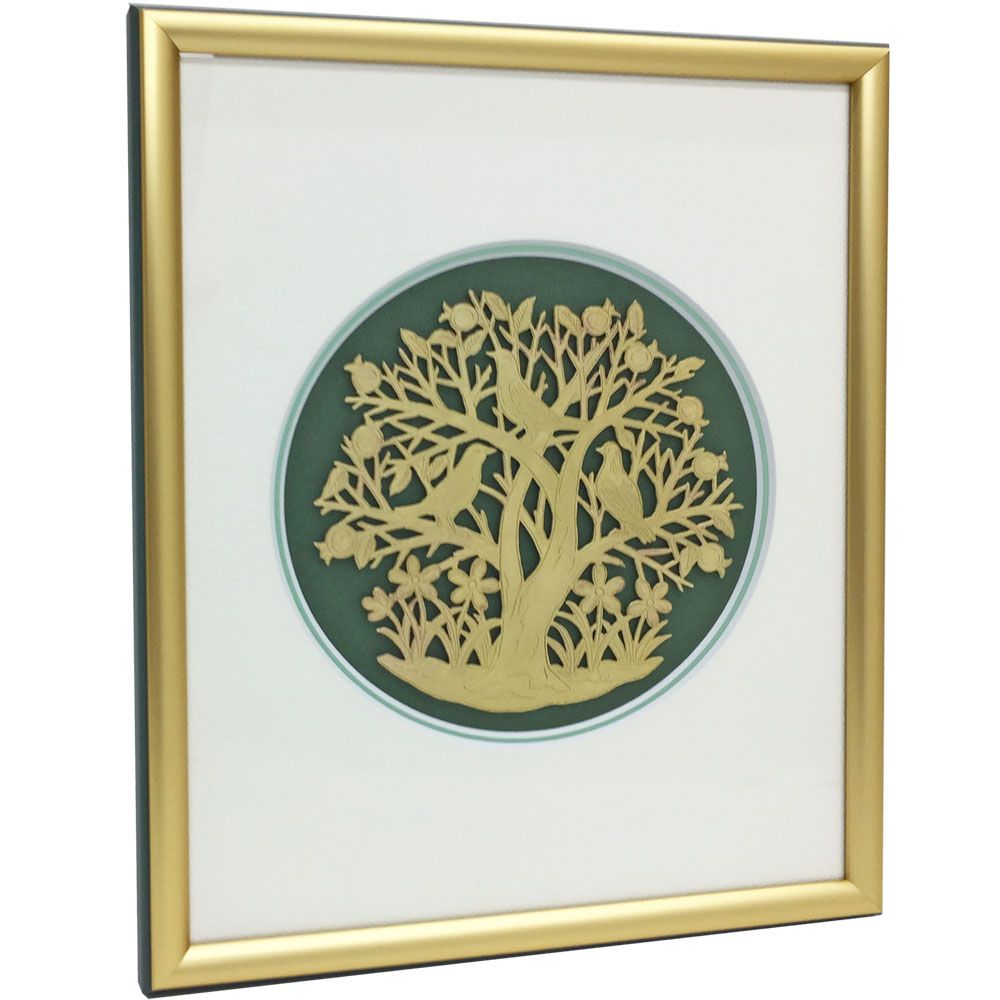 木にとまる鳥をモチーフにした彫金細工の額装です