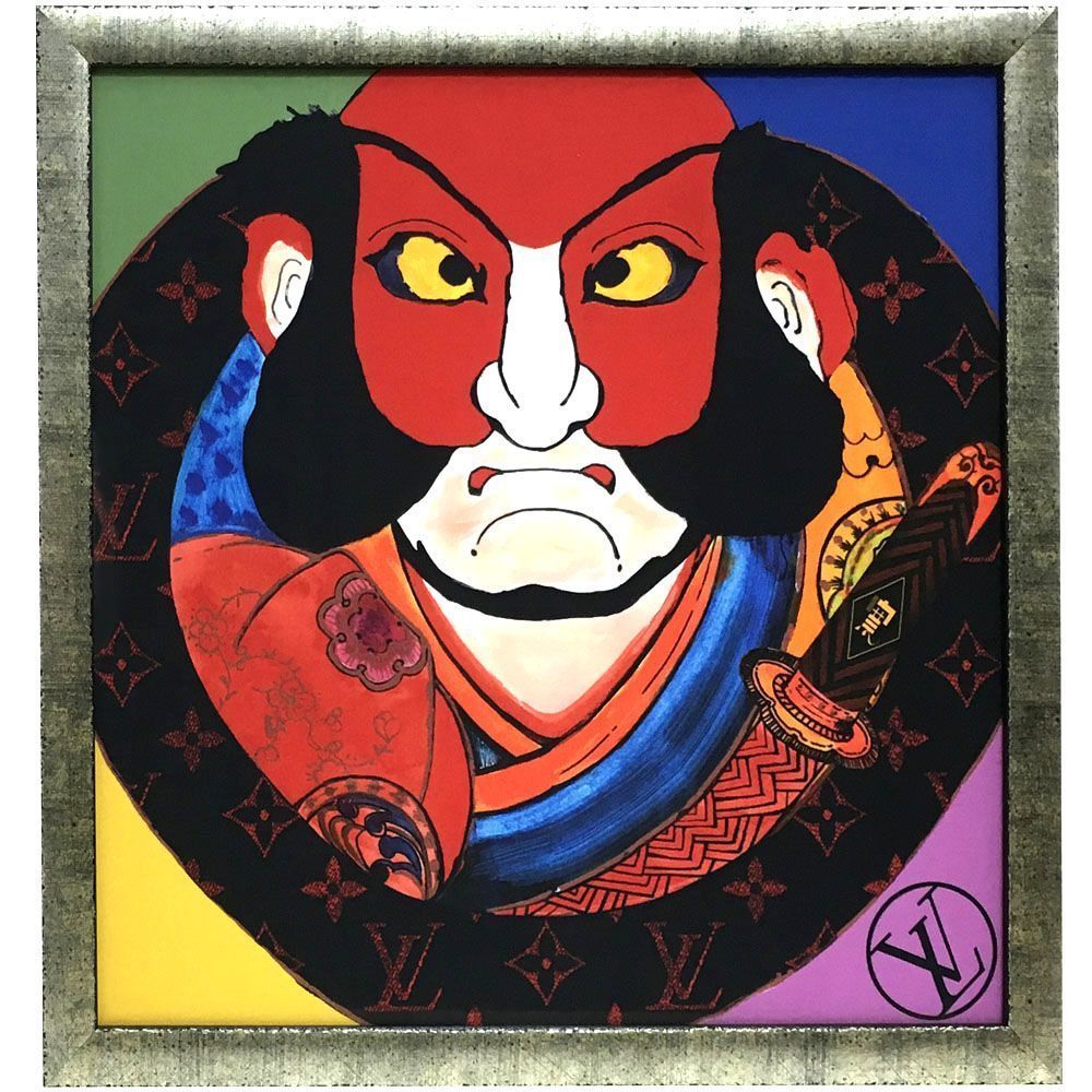 真っ赤に塗られた顔の迫力に目を奪われる、インパクトのある作品は日本限定です。他にも財布や靴などの商品がありますが、こうして絵画のように額装できるのはバンダナならではのものでしょう。勿論、気に入った財布や靴を額装しても魅力的です。