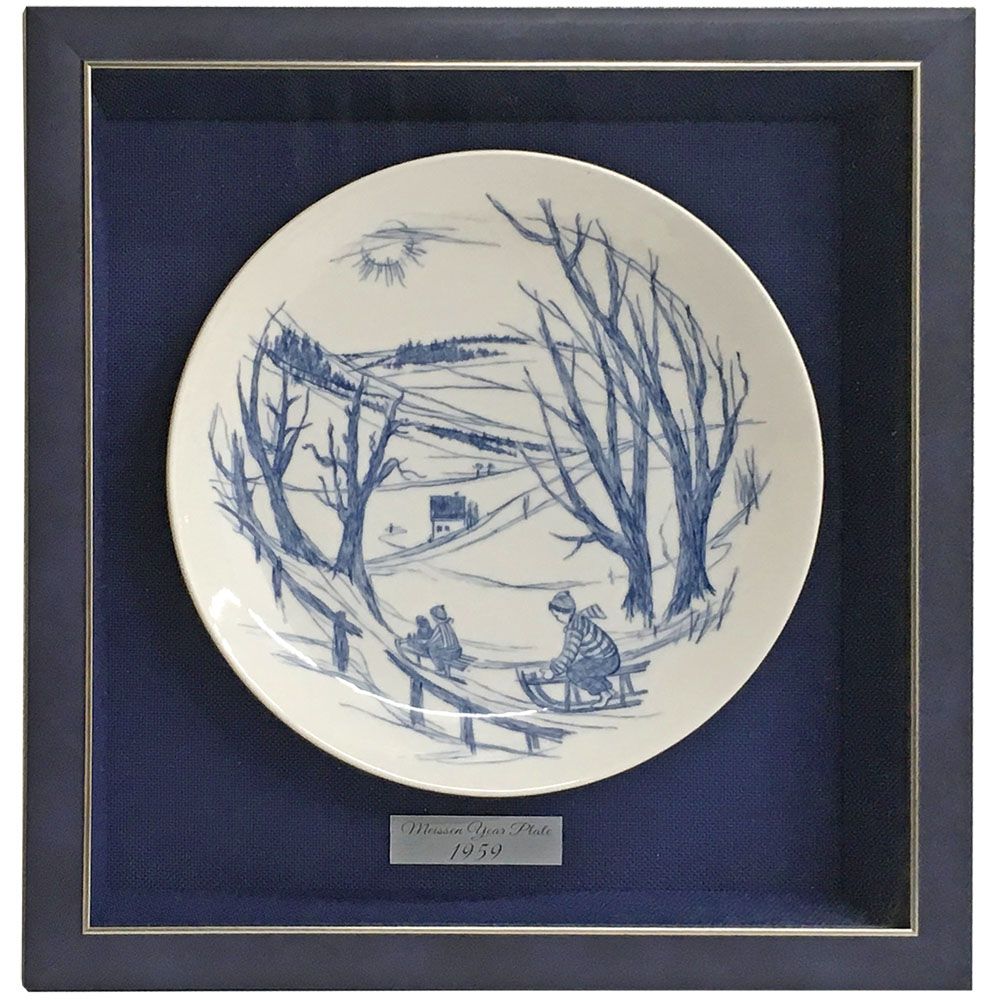 こちらは磁器で有名なマイセンの絵皿です。お皿の白と青の線だけで表現されていますが、奥行きのある構図で冬の一場面が可愛らしく臨場感たっぷりに描かれています。