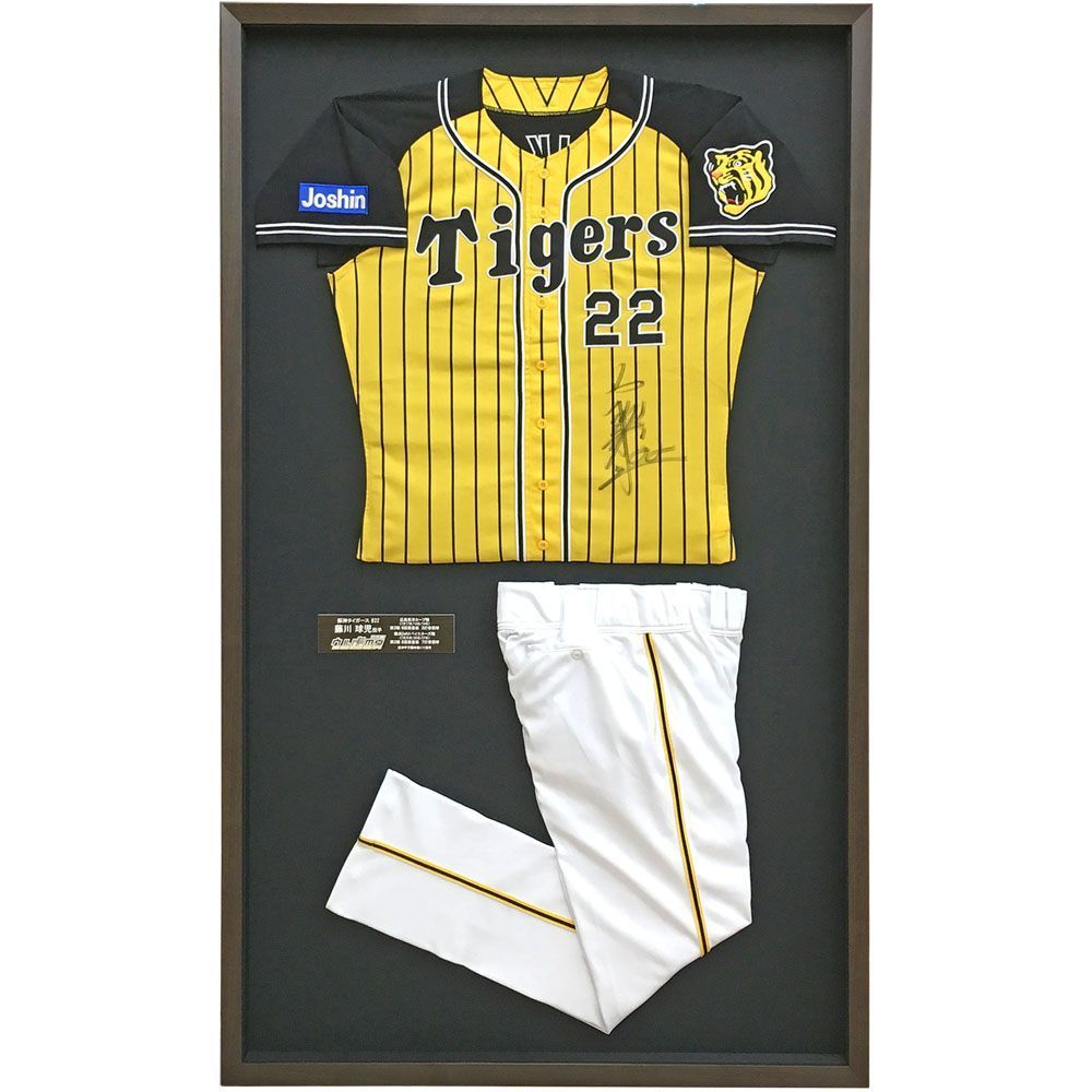 阪神タイガース、藤川球児選手のサイン入りユニフォームです。タイガースのチームカラーを取り入れたど派手なユニフォーム。「ウル虎の夏2017」のためにデザインされた限定品です。こういった各球団が独自に企画する試合のためのユニホームは、「サードユニフォーム」と呼ばれてファンを楽しませてくれます。