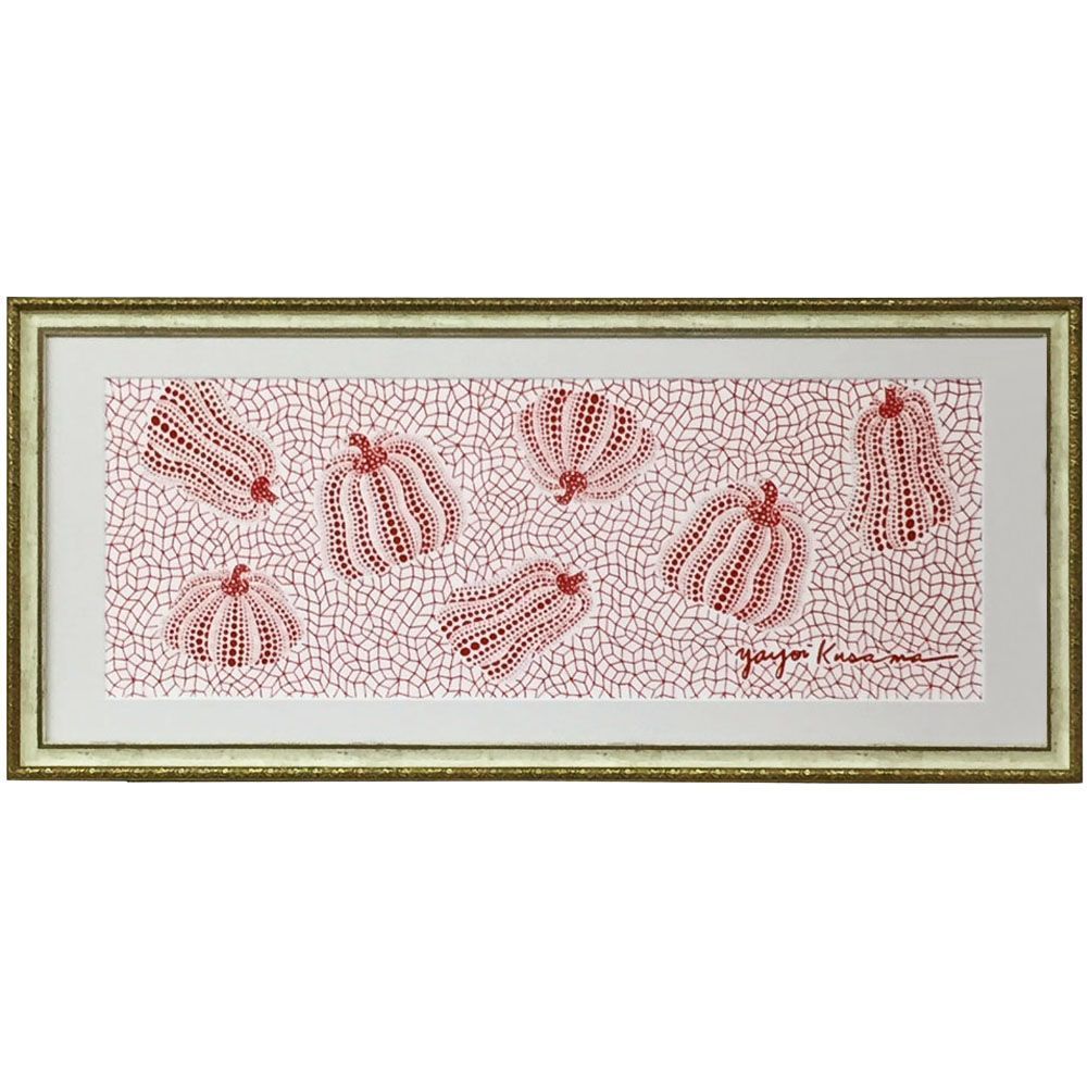 一目で草間彌生さんだとわかる、かぼちゃの手ぬぐいの額装です。世界的な人気を誇る草間彌生さんの作品は、様々なグッズ展開がされていますが、手ぬぐいは価格的にも手を出しやすいアイテム。額縁に入れれば、アートなインテリアがお手軽に実現できます。