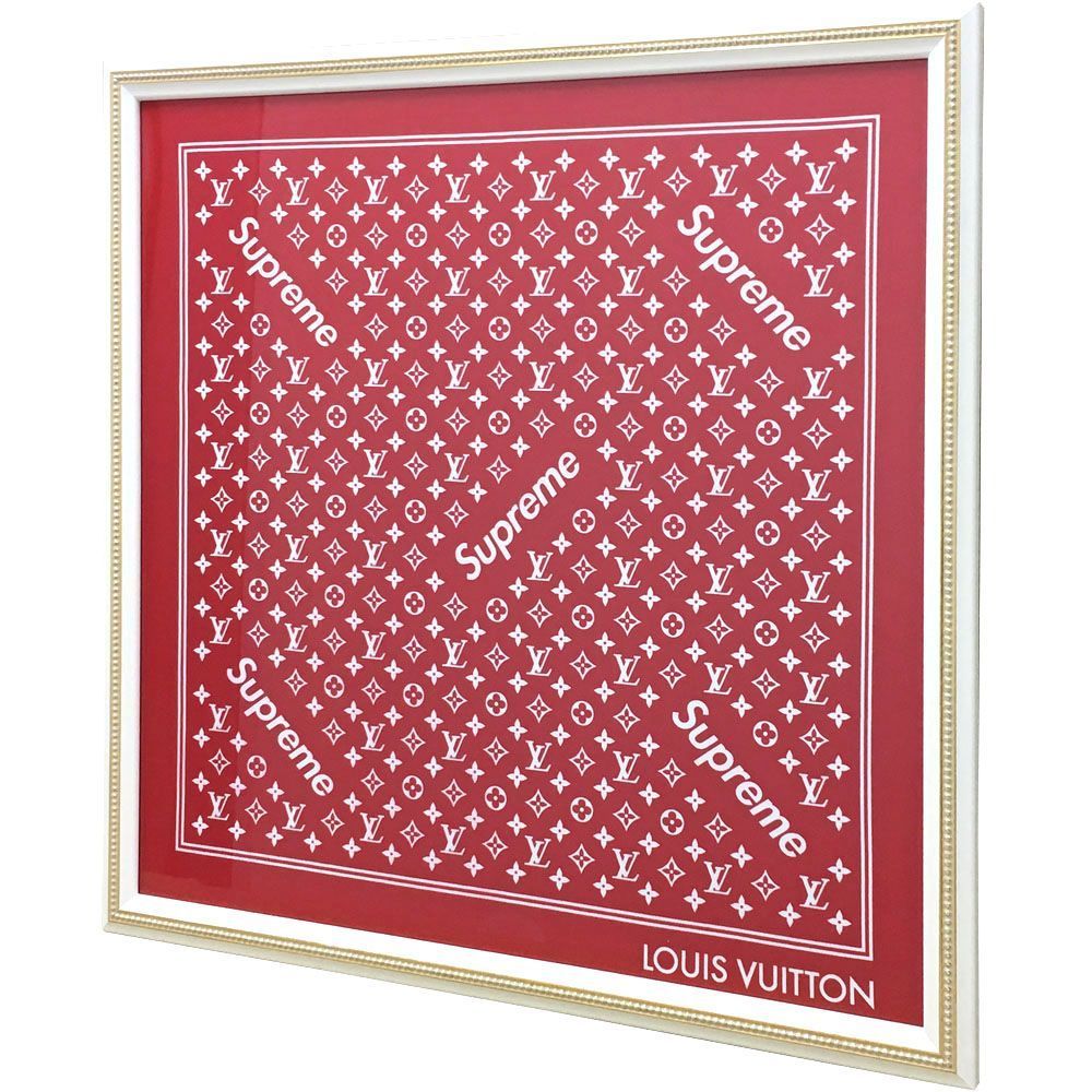 ニューヨークのファッションブランド「シュプリーム」は、ルイヴィトンとのコラボ商品をいくつか展開しています。その中のひとつである小ぶりなスカーフを額装しました。