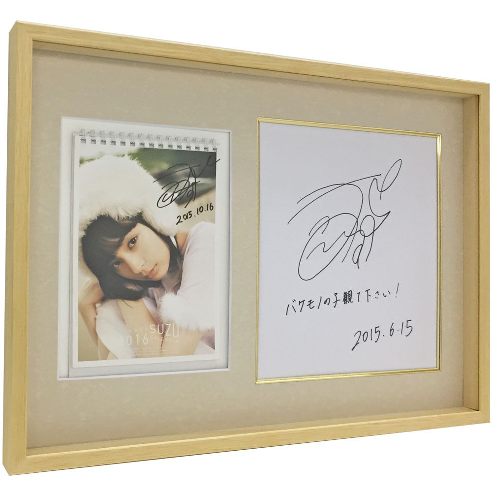 サインの日付が異なるので、それぞれ手に入れられた品かと思います。しかしサイン色紙単品ですと、どうしても仕上がりがシンプルになりがちです。こうして写真などの別の品と合わせることによりインテリアとしての完成度もグッと増します。好きなタレントのサイン色紙を手に入れられたら、関連した品をご一緒にお入れすることをお奨めします。