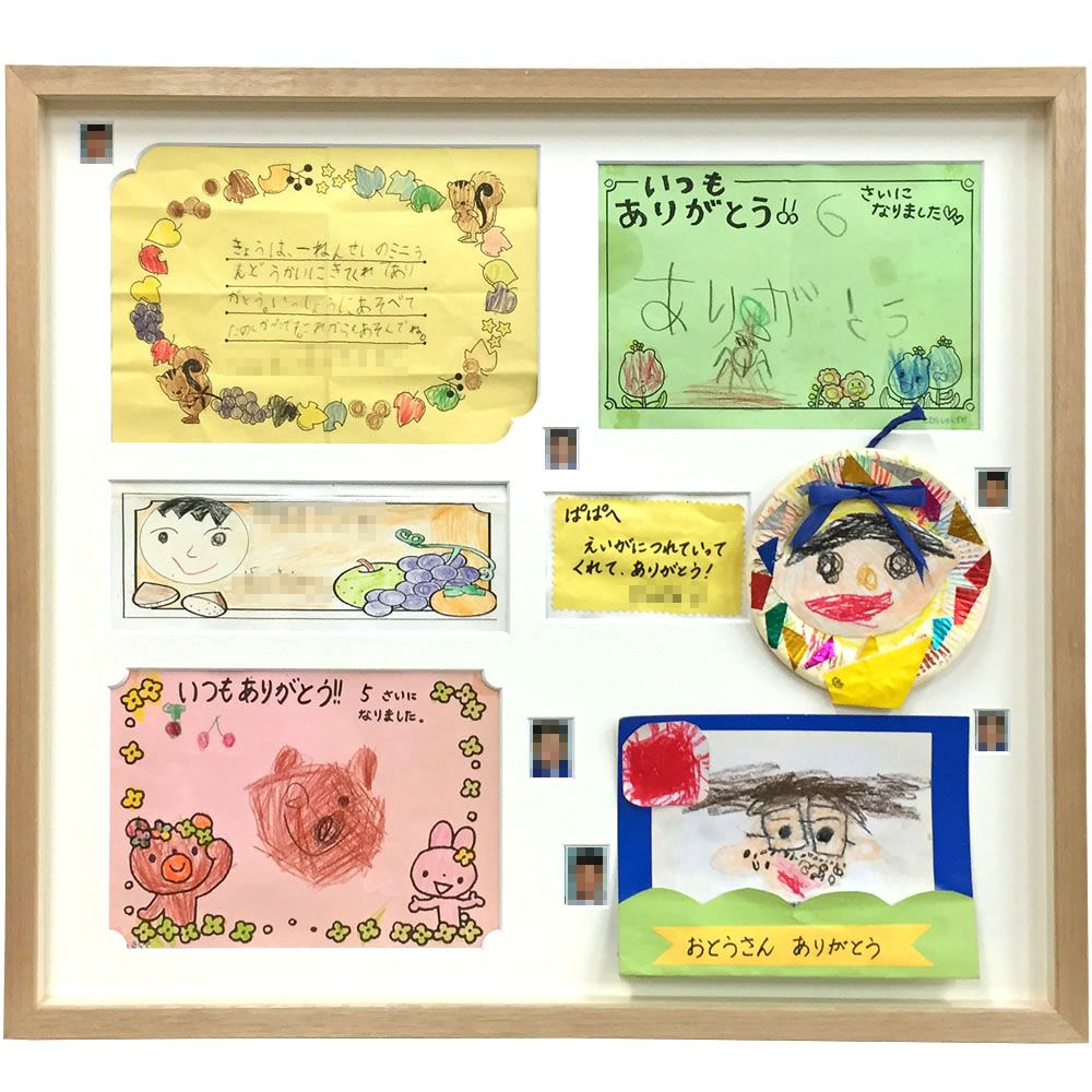 パパへのお手紙や似顔絵を、まとめて額縁にレイアウトしました