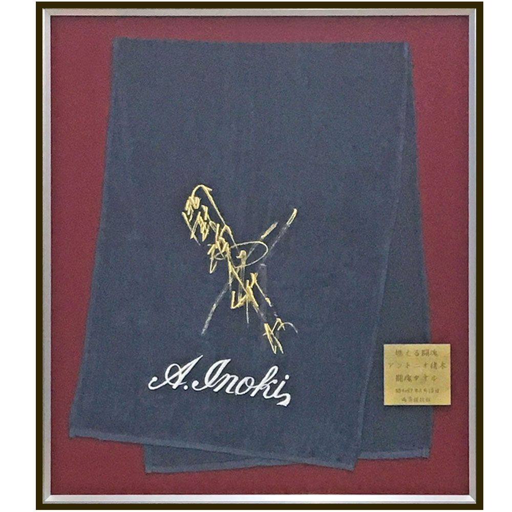燃える闘魂、アントニオ猪木の刺繍入りタオルを額装しました