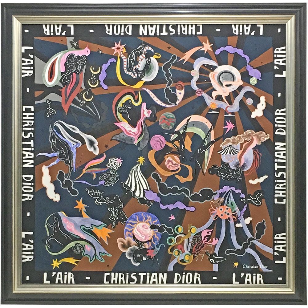クリスチャン・ディオールの90cmのカレの額装です。仏教世界をデフォルメして描いているのでしょうか。スカーフのデザインはそれこそ無数にありますが、トップクラスのインパクトがある一品です。