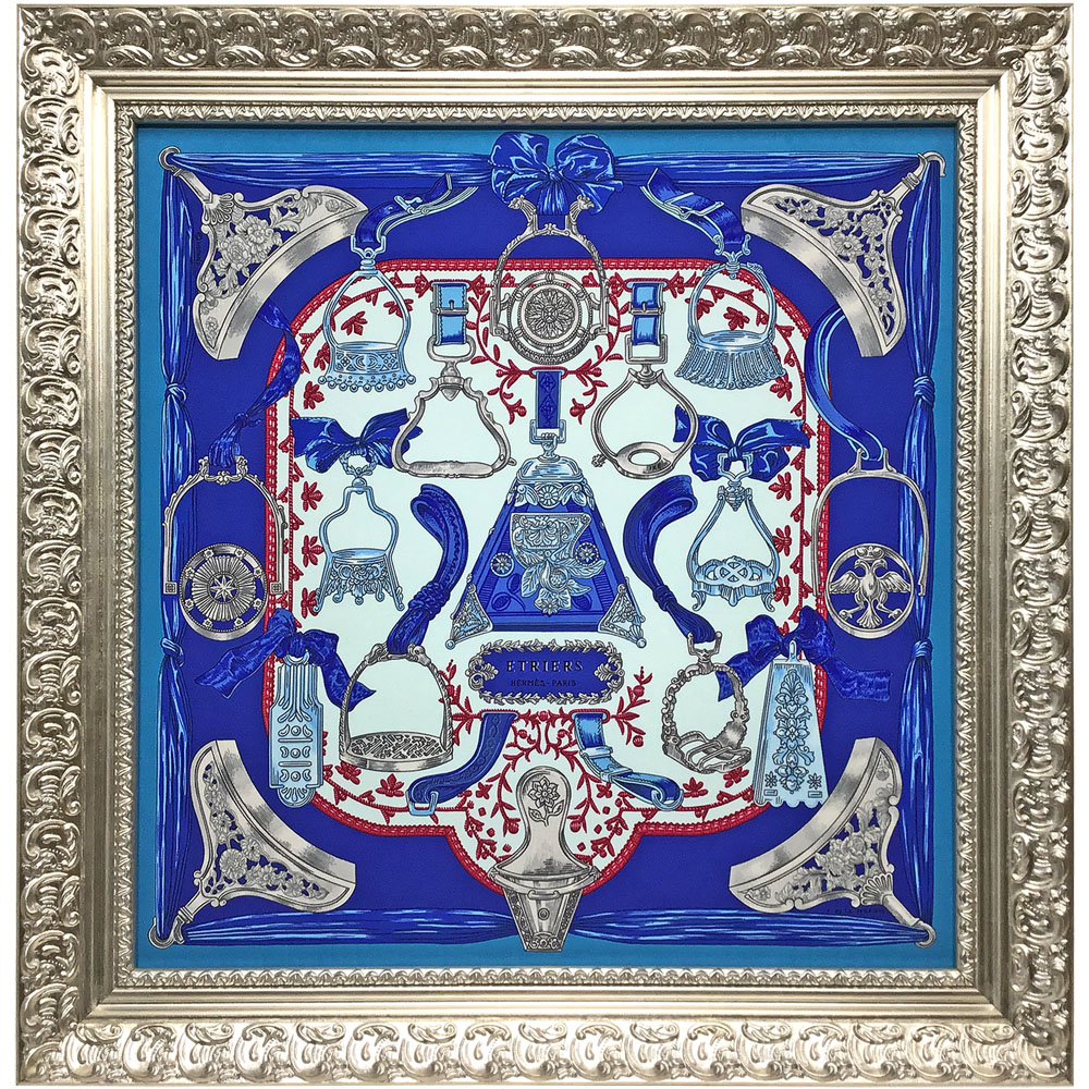 エルメスのETRIERS(鎧柄)のスカーフです。約45cm前後のハンカチサイズの小さなスカーフで、マットも付けないシンプルな額装ですが、大きさに見合わぬ仕上がりになりました。