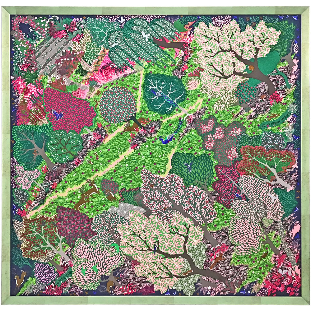 エルメスのスカーフ「Dans Un Jardin Anglais(英国式庭園にて)」を額装しました。