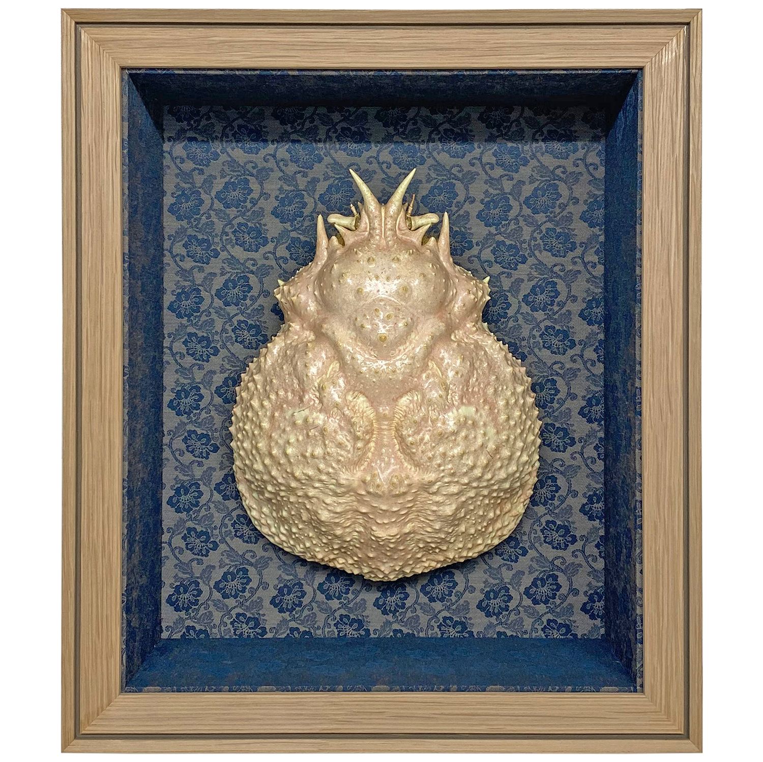 状態にもよりますが、タカアシガニの甲羅は額装向きと言えるでしょう。こちらの甲羅は直径20cmほどの大きさで、キズもなくとても美しいものでした。普通のカニの大きさを想像しているとビックリしますね。大きなものでは甲羅は人の顔より大きくなるとのこと。ちなみに、タカアシガニの正体は正確にはカニではない様子…。まさに自然の神秘です。