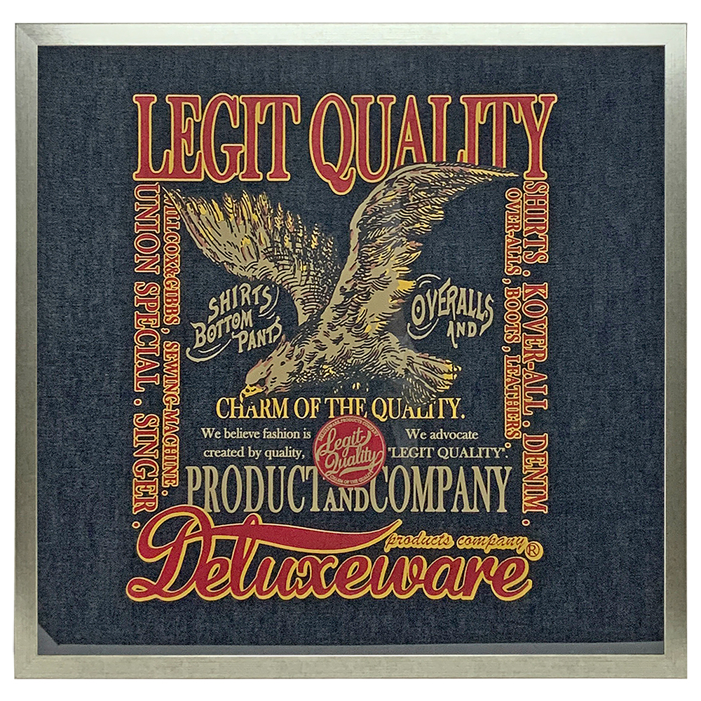 お客様のお気に入りのアパレルメーカー【デラックスウエア】社の製品をお預かりして額装しました。
