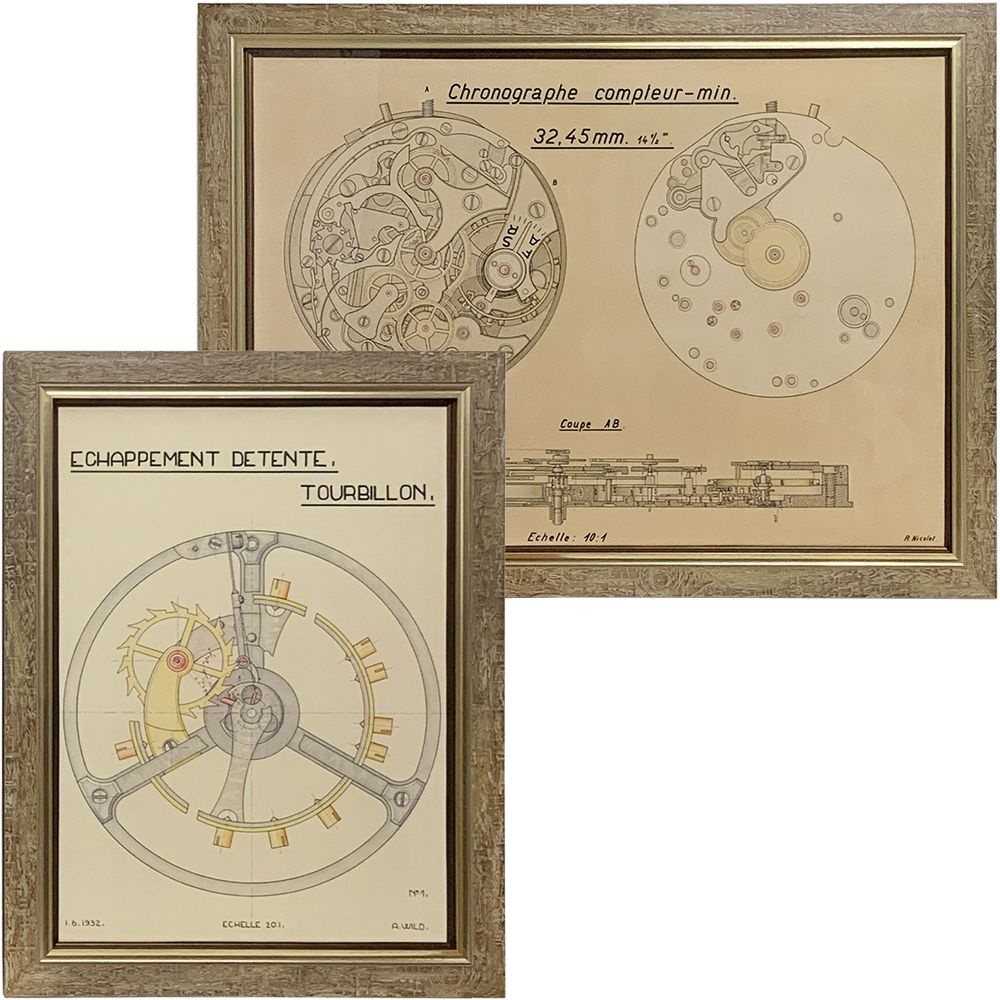 時計機構として有名な、「トゥールビヨン」のメカニズムが描かれたキャンバス画布。時計に興味のある方なら、思わず見入ってしまう品物です。紙への印刷物ではなく、年季の入ったキャンバス画布というところに、先人たちから受け継がれてきた時計の歴史が感じられます。アンティーク調のフレームとのコーディネイトも見事にはまりました。