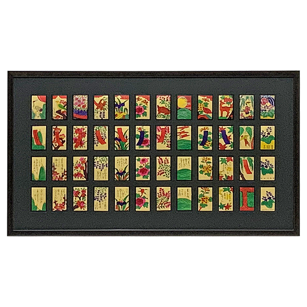 他の額装例でも簡単な手擦り花札の歴史に触れていますが、現在では後継者が絶えてしまい、手に入れることが困難な貴重な品物です。