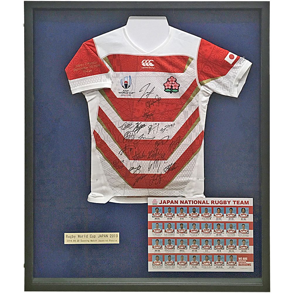 ラグビーワールドカップ2019年は日本がホスト国として挑み、日本中が歓喜と興奮に沸いた大会となりました。予選、開幕戦においてロシアと対戦し、快勝を収めた記念すべきユニフォームです。選手全員のサインが入っている貴重な一品。