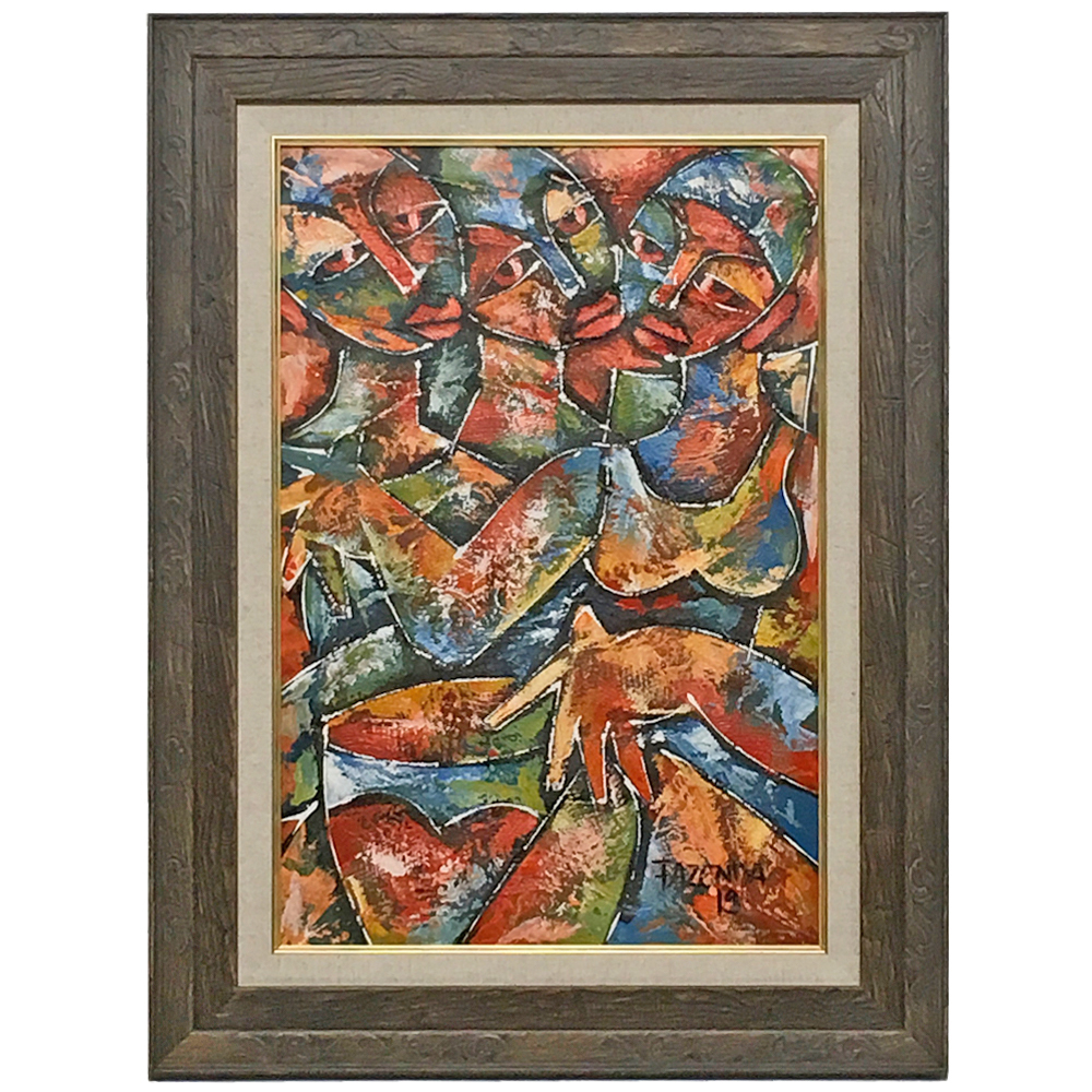 海外旅行で求めた油絵の額装です。アフリカのタンザニアで求めた作品でしょうか。デフォルメされた荒々しい描写とカラフルな色合いが合わさって、元気なパワーが湧き上がってくるようです。