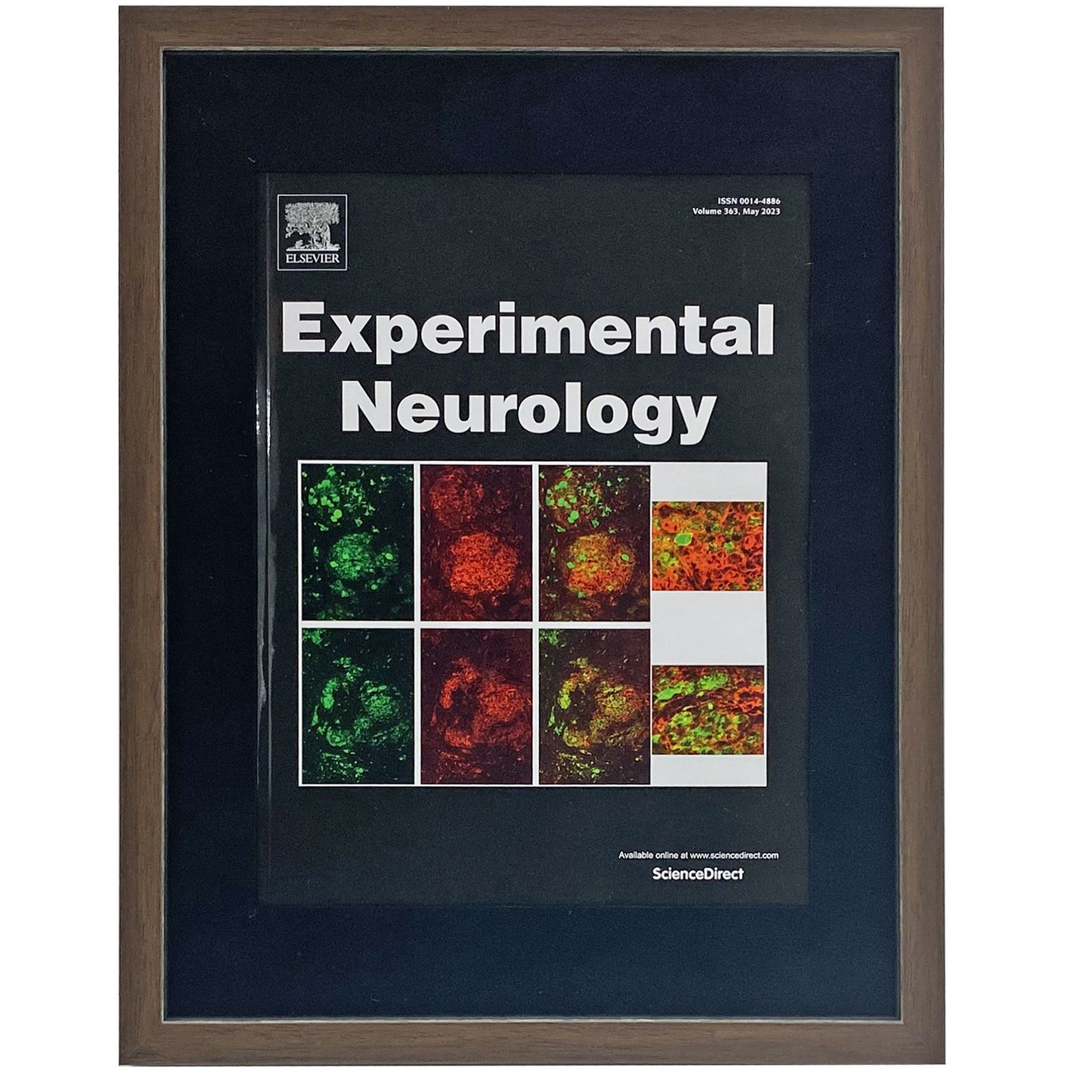 「Experimental Neurology」は神経学、神経科学を専門とする医学雑誌。ご自身の論文が掲載された思い入れのある雑誌を飾りました。