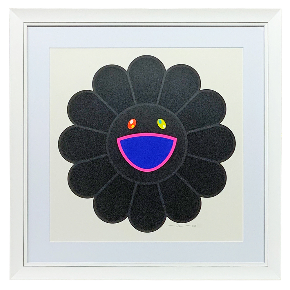 2020年5月に販売された、村上隆さんの限定版画。100枚限りで販売された、シリアルナンバー入りの特別な作品です。今までとは一味違う真っ黒なお花は、全体にラメ加工が施され見る角度によってキラキラと表情を変えます。