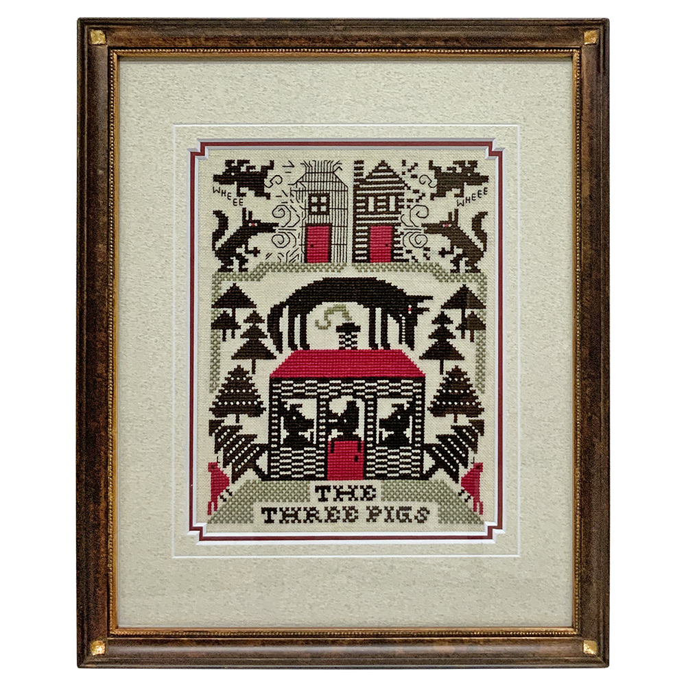 三匹の子豚と、赤ずきんちゃんは、どちらも狼が登場する東洋にも慣れ親しまれた物語。カラフルな絵本も懐かしいですが、こちらの刺繍のように影絵風のシンプルな仕上がりも想像力が掻き立てられます。