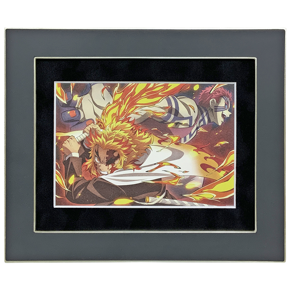 劇場版「鬼滅の刃」の入場特典第二弾を額装しました。147×210(A5)サイズのイラストカード入場特典は2種類ありますが、その内の煉獄杏寿郎と猗窩座の戦いが描かれた迫力満点のイラストです。