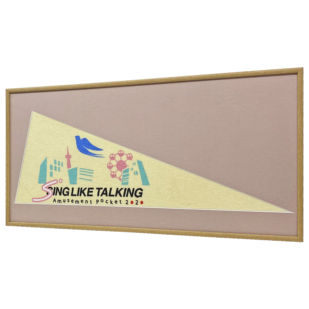 ロックバンド、SING LIKE TALKING(シングライクトーキング)の「Amusement Pocket 2020」のペナントタオル。コロナの影響から「Amusement Pocket 2020」は開催が見送られたようですが、代わりの配信ライブで販売されたアイテムでしょうか。薄手の布地で作られた三角ペナントはよく見かけますが、三角形のタオルは目にしたことがありません。