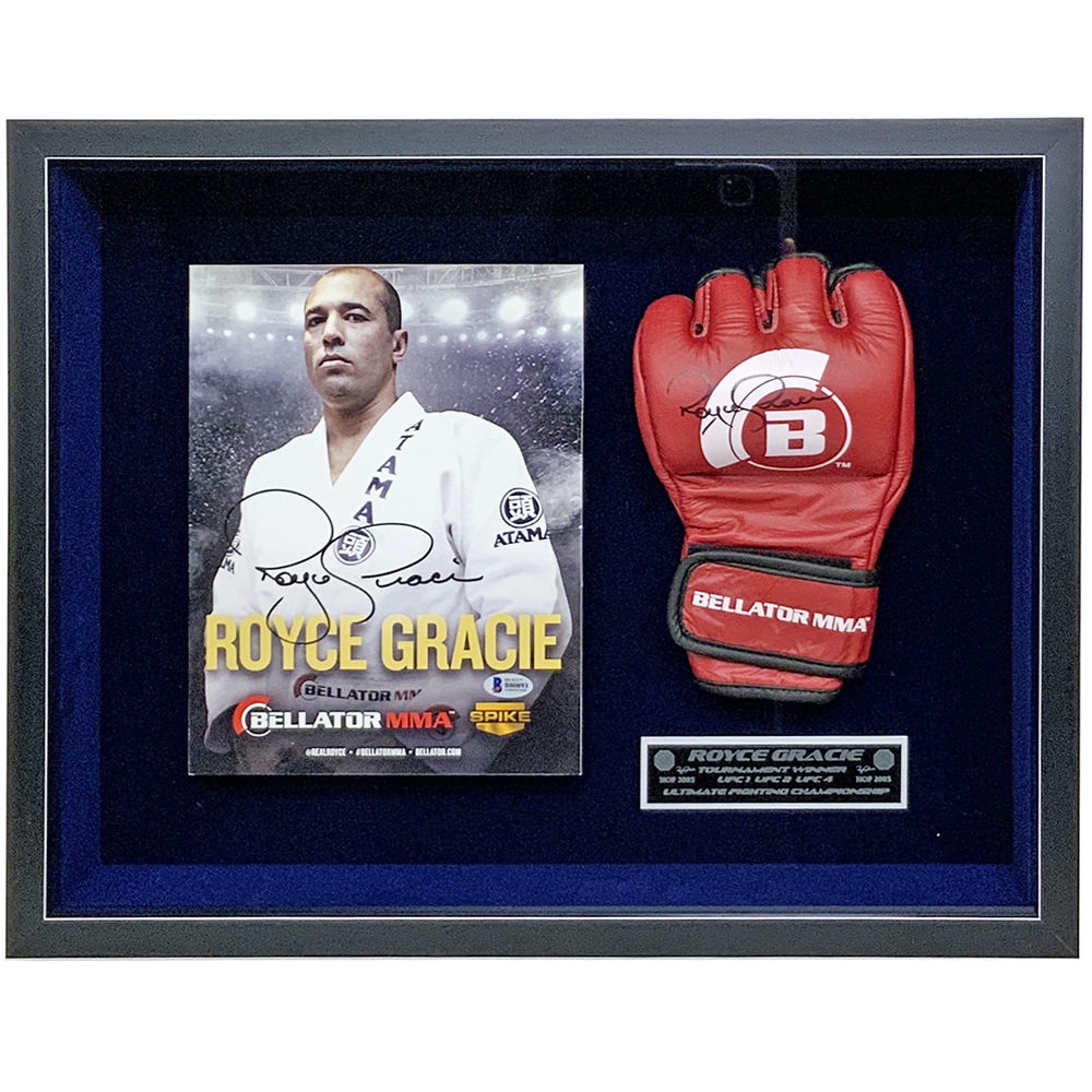 格闘技界にブラジリアン柔術を知らしめ、自分よりもよほど大きな男たちを次々と倒したホイス・グレーシー。総合格闘技に最も影響を与えた人物とも評されます。そんな偉大な柔術家のサイン入りグローブとお写真を飾りました。