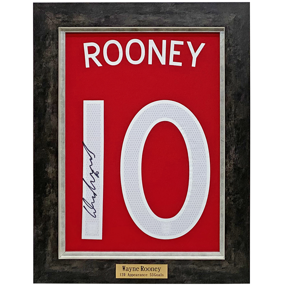 イングランド史上最高の選手と評されるサッカー選手、ウェイン・マーク・ルーニー(Wayne Mark Rooney)のサイン入りユニフォームの額装です。