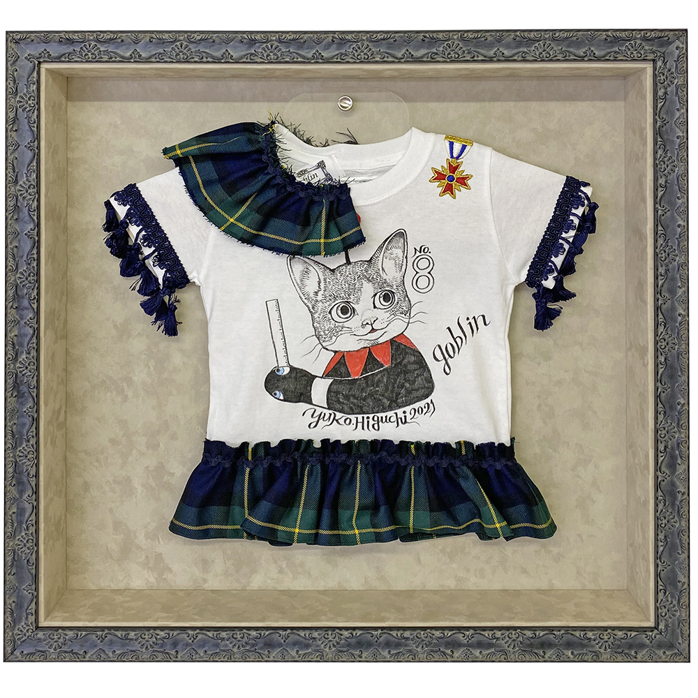 ヒグチユウコ 装飾Tシャツ 1点物の手描き&装飾されたTシャツをアンティークな額縁に飾りました