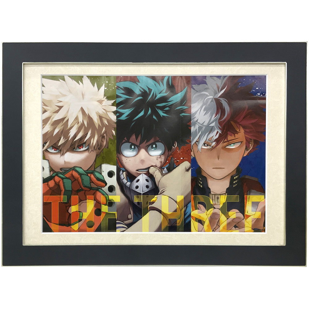 2021年10月21日に発売された「ジャンプGIGA 2021 AUTUMN」の付録ポスターを額装しました。「僕のヒーローアカデミア」の主人公の緑谷出久の他、メインキャラクターの爆豪勝己と轟焦凍を加えた堀越耕平先生による描き下ろしイラストです。