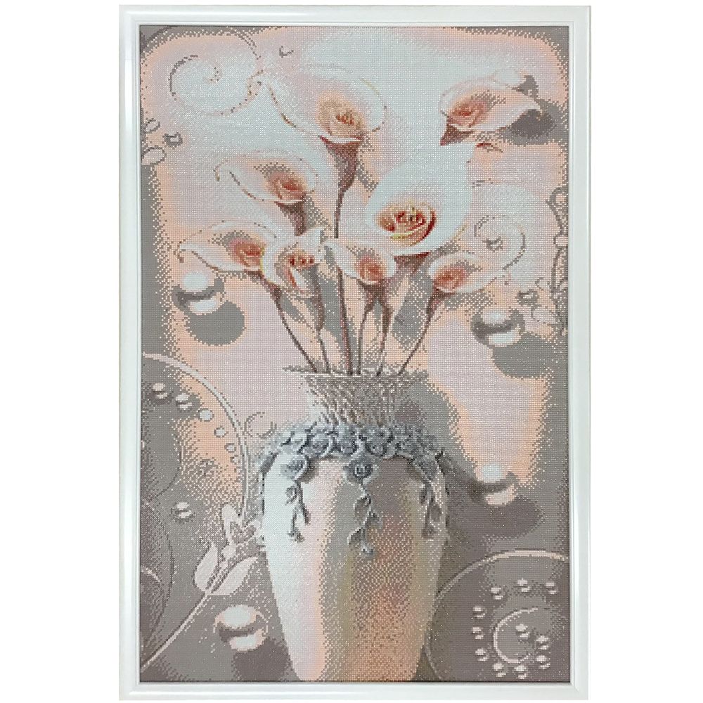 さて、作品を構成するのは、一粒一粒がカットの入った色付きのラインストーンですので、作品自体に上品な煌めきがあります。今回の作品は、淡いピンクがメインで優しい色合いでまとまっており、全体的に華やかで明るいオーラを持った作品です。フレームはふっくらとした曲線を持ったパールホワイト(