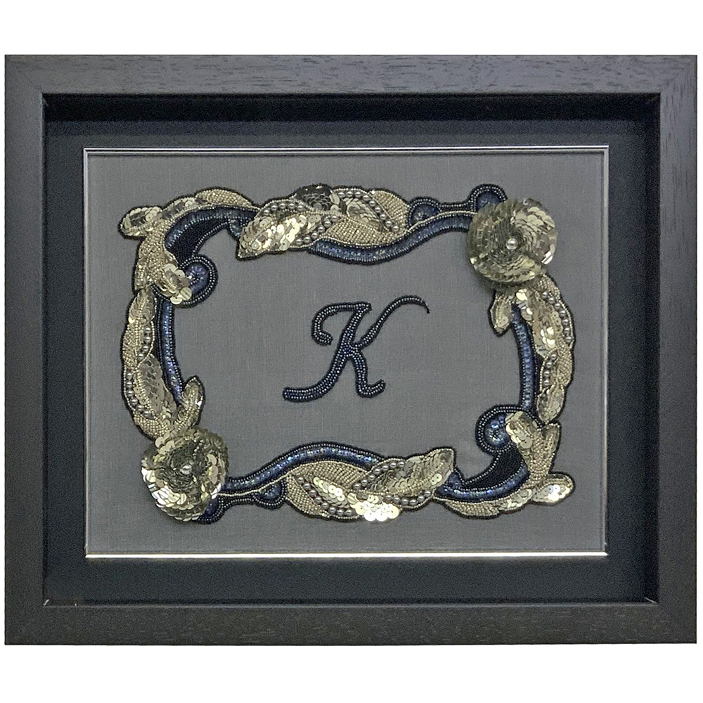 シルクオーガンジーに施されたビーズ刺繍の額装です。連なったビーズが最大で15ミリほどの厚みを作っています。規格サイズの立体額を利用してコンパクトに飾りました。