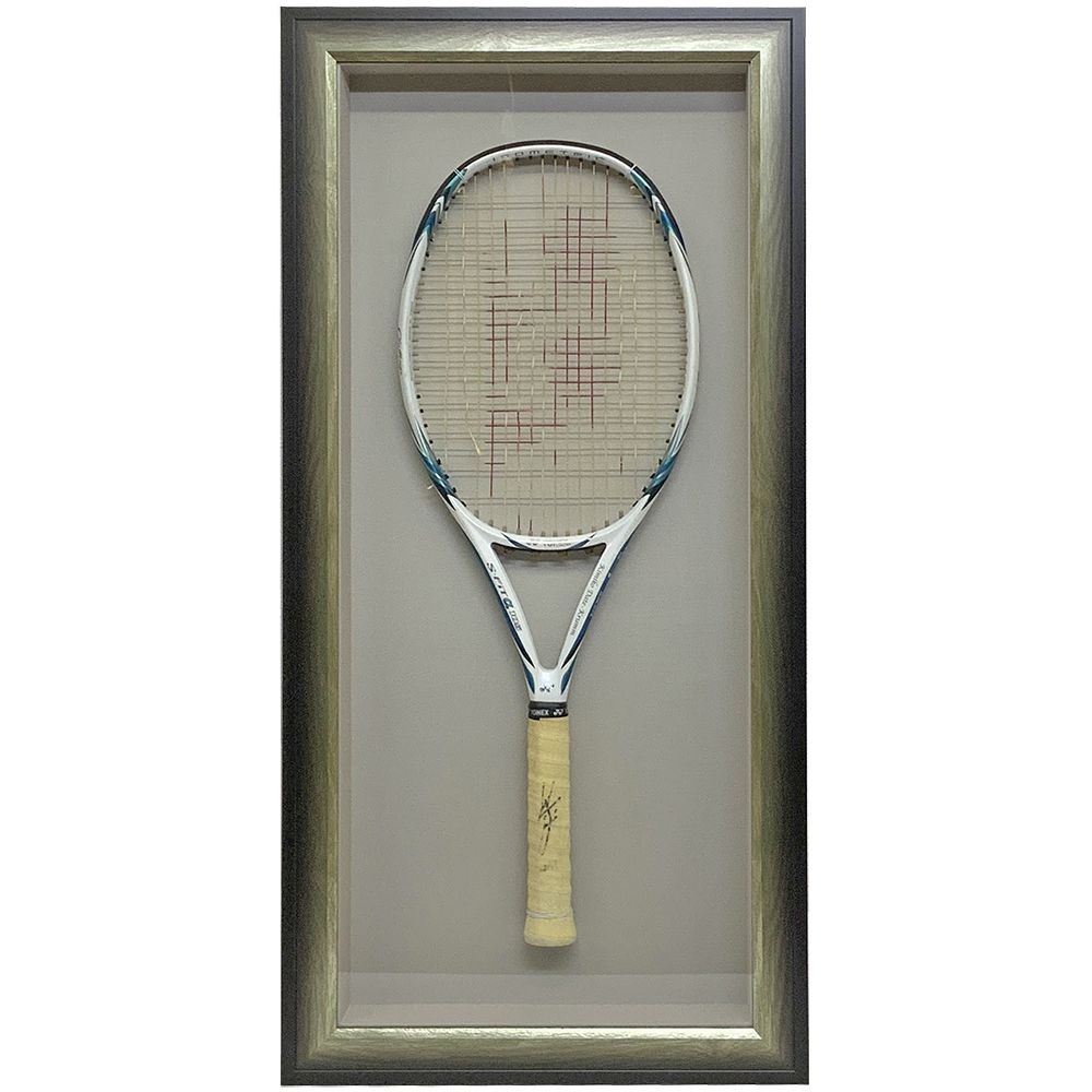 言わずと知れたプロテニスプレーヤー、伊達公子選手のサイン入りラケットの額装です。汗が染み込んだグリップ、千切れたガットなど、使い込まれたラケットであることが窺えます。