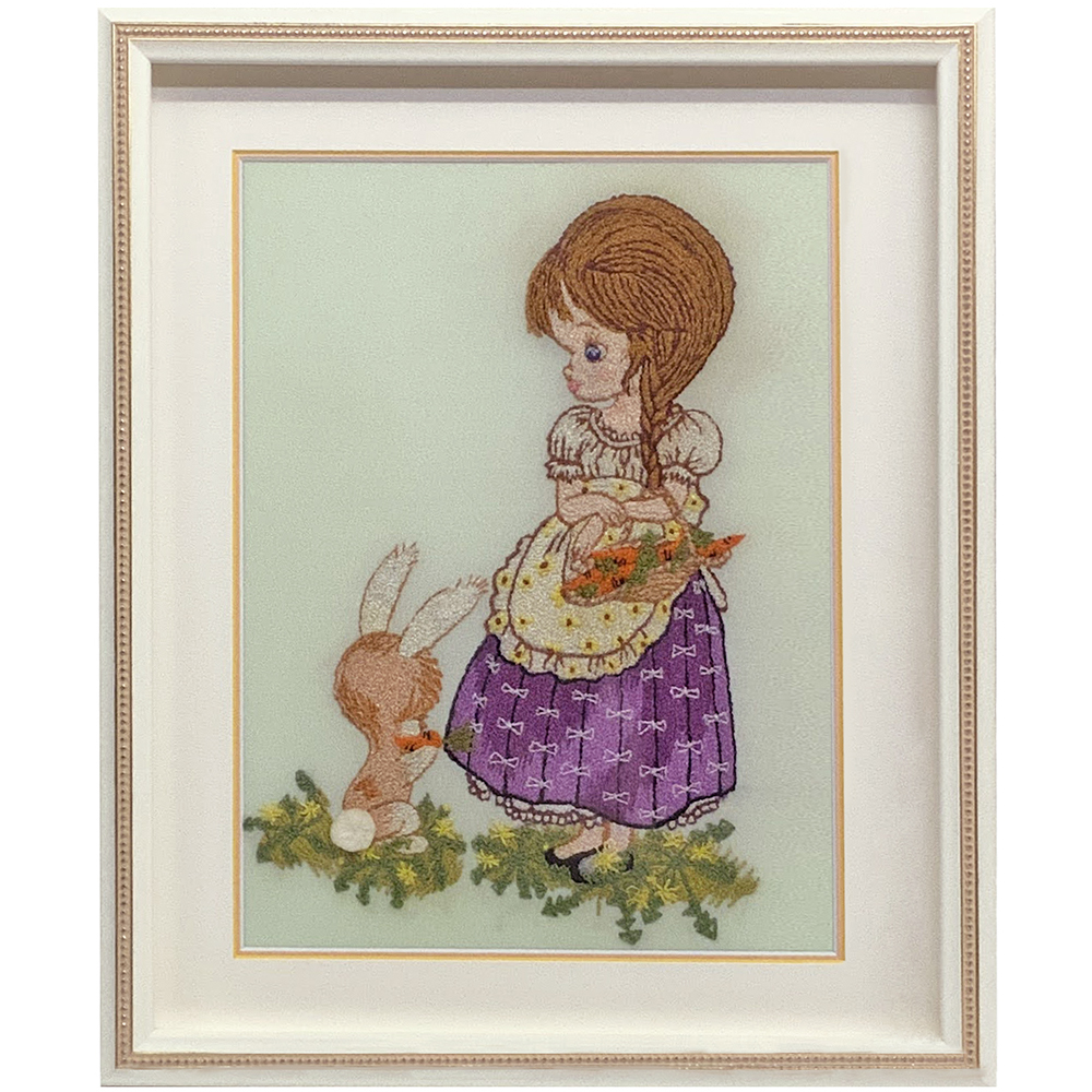 【文化刺繍 女の子とウサギ】