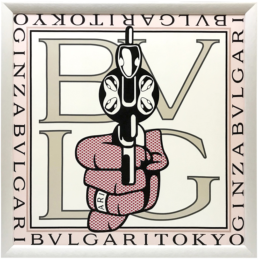 ブルガリ(BVLGARI)のスカーフ、セルペンティの額装です。1948年に誕生したブルガリのアイコン、セルペンティ。「セルペンティ」はイタリア語で「蛇」を意味します。蛇は再生や幸運の象徴としてたくさんのファッションに取り入れられていますが、脱皮を繰り返す「再生」のイメージにあやかって、特に新年の好まれるデザインでもあります。こちらのスカーフも2018年から2019年の年末年始にオープンした、ポップアップストアでの限定品のようです。