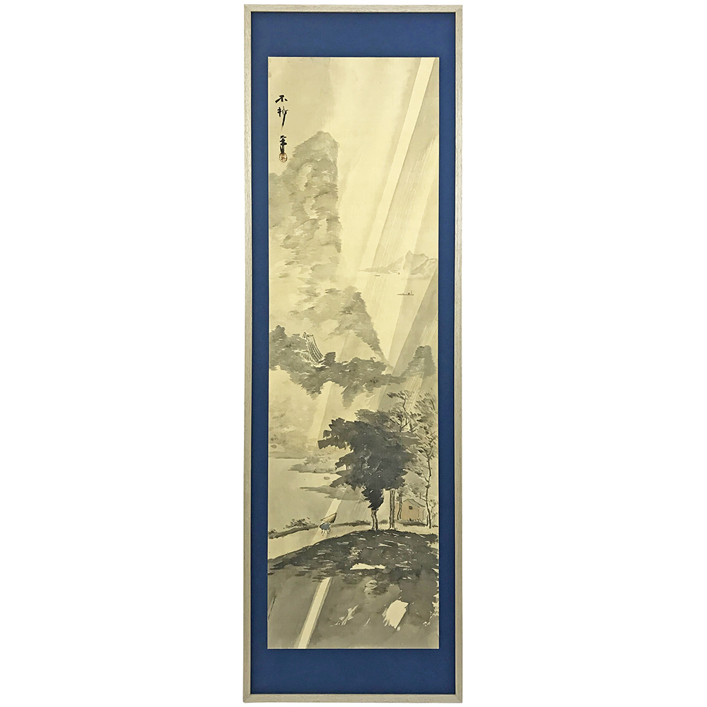 掛け軸の水墨画を、剥がし-洗いの工程を挟んで額装しました