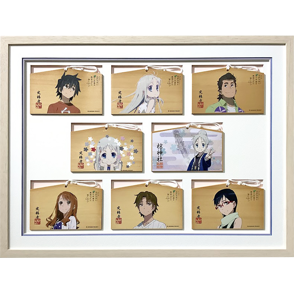 『あの日見た花の名前を僕達はまだ知らない。』通称「あの花」の作品の舞台と言われている埼玉県秩父市。作品の中で何度も描かれ、登場していた「札所17番・実正山 定林寺」と名シーンの場所である秩父市吉田にある「椋神社の龍勢櫓」この二か所の名が入ったキャラクター絵馬を額装させて頂きました。