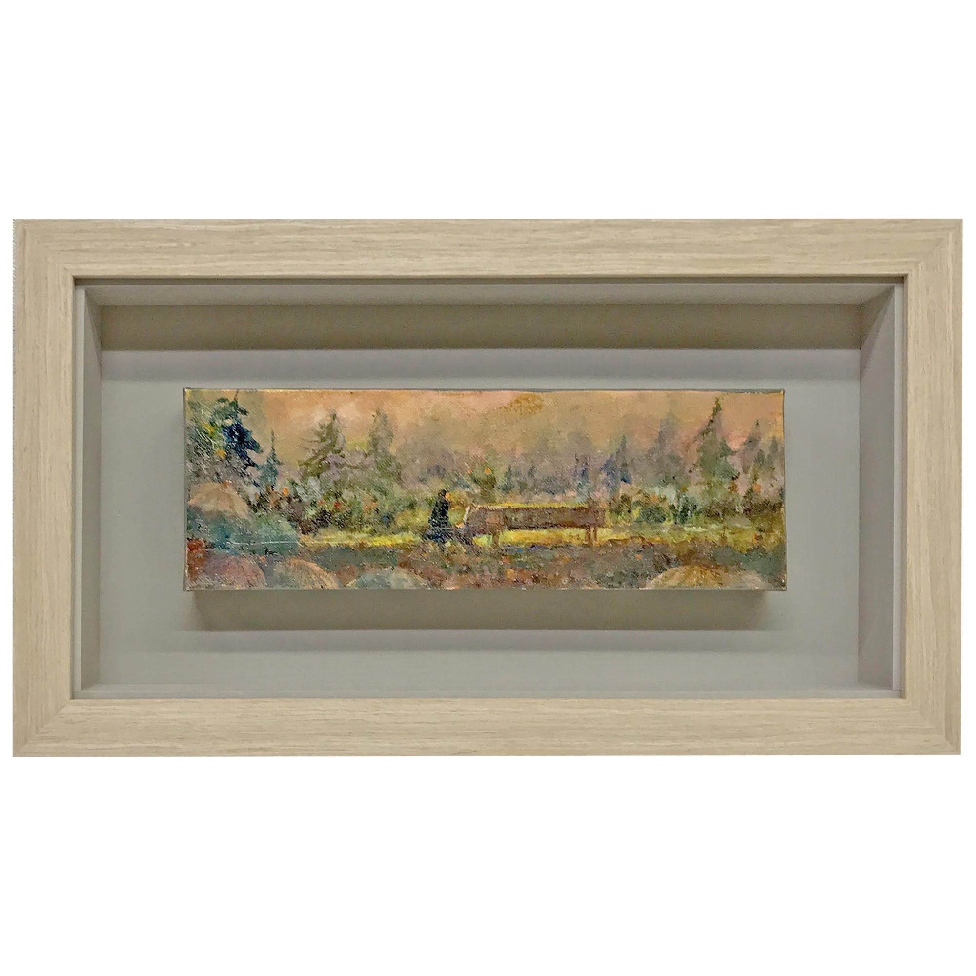 4cmほどの厚みがあるキャンバスの額装です。作品サイズは約10×30cmくらいと小さいですが、厚みがもたらす存在感が感じられます。