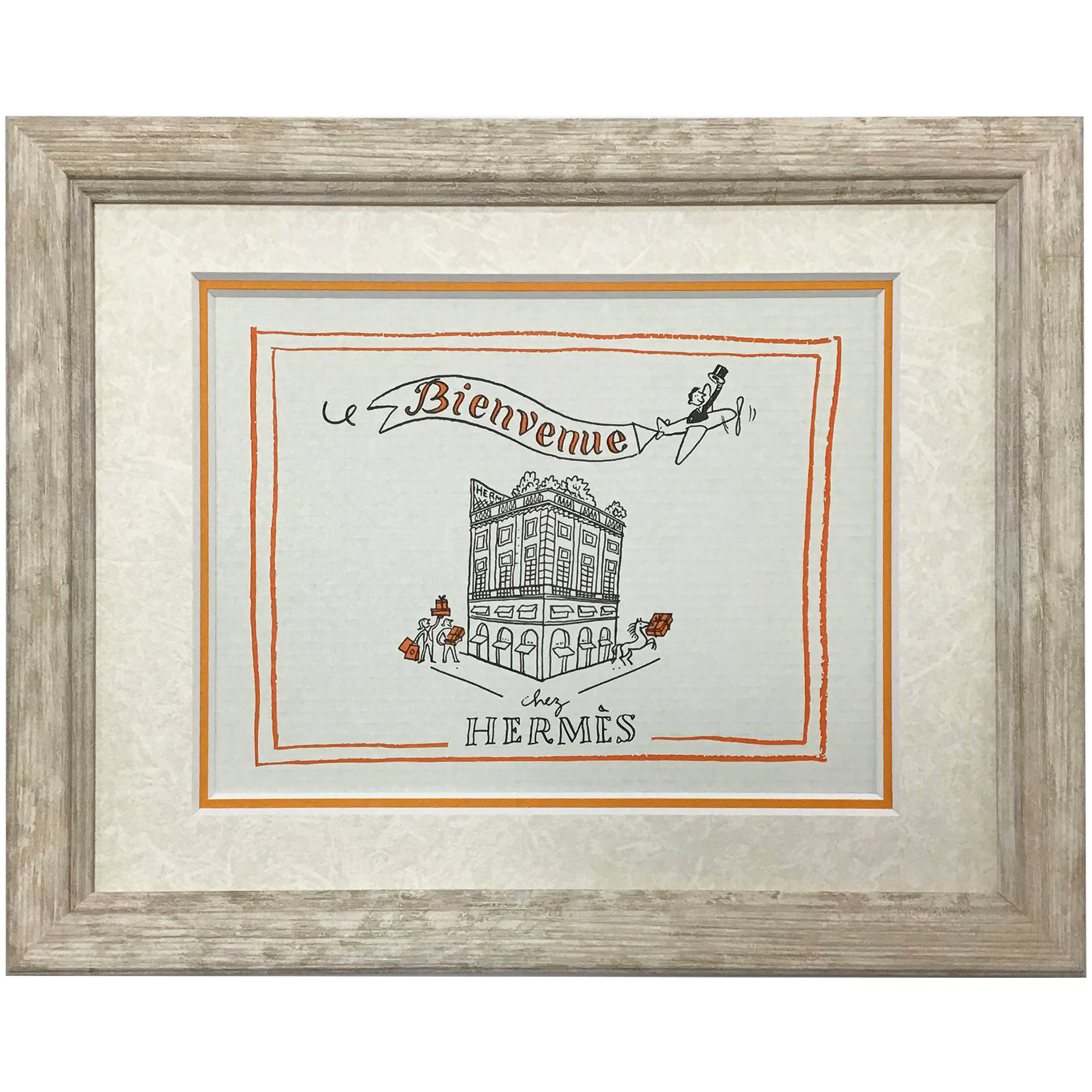 HERMESのネクタイのパッケージデザインを額装しました。お客様は、蓋の裏にあるイラストが素敵で飾って楽しみたいと思われ、ご来店されたとの事でした。蓋裏のデザインということは、購入した方のみが目にするパッケージの内側です。お客様が楽しくなるような空間の演出は、工夫次第で小さいも大きいも関係なくなるのだと感じます。