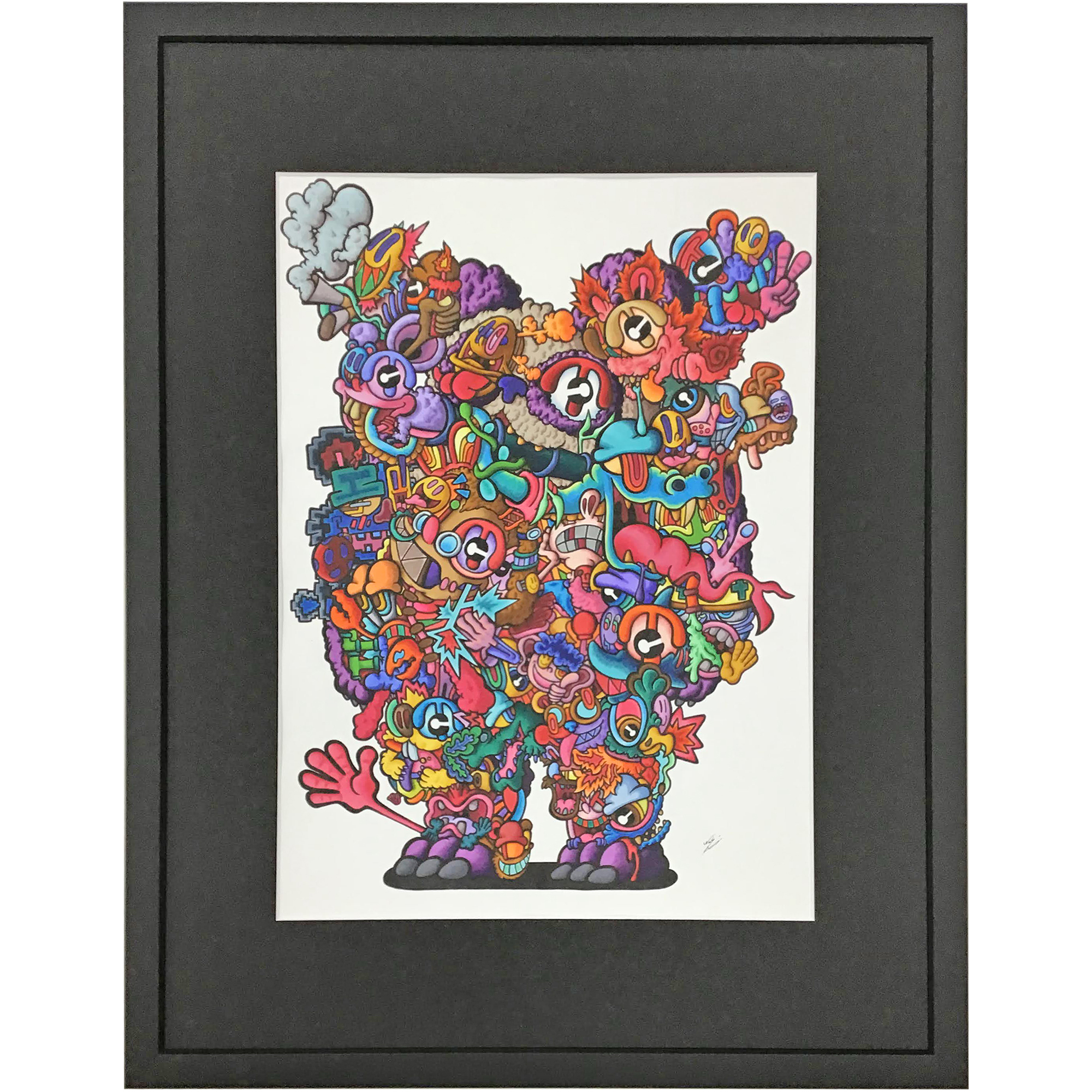 作品裏に「2022/2/15 パンダ」と記入されており、パンダのようなキャラクターに、様々なイラストがカラフルに描き込まれています。描いたのはdoodle artistのTee様(