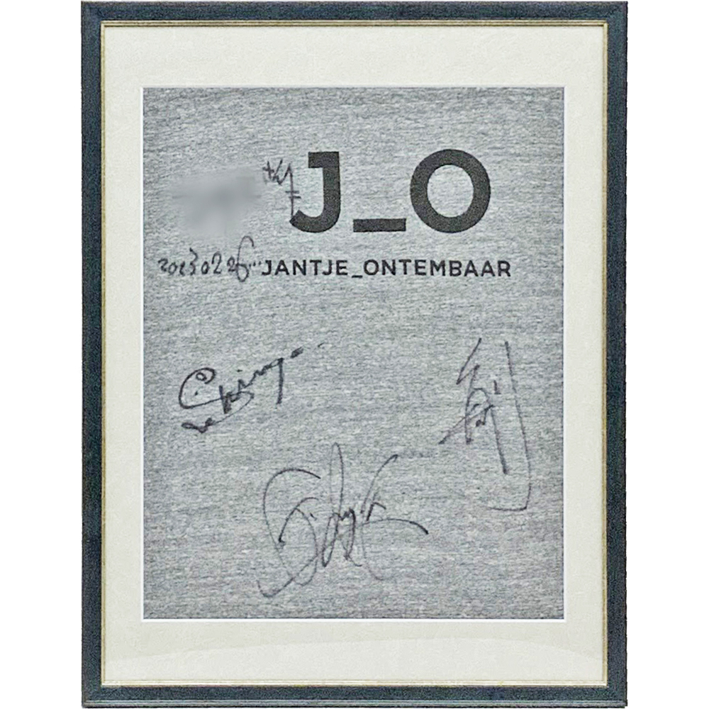 香取慎吾さん・草剛さん・稲垣五郎さんのお三方のサインが入ったTシャツを額装しました。香取慎吾さんの運営するブランド「JANTJE_ONTEMBAAR(ヤンチェ・オンテンバール)」から発売されているTシャツです。