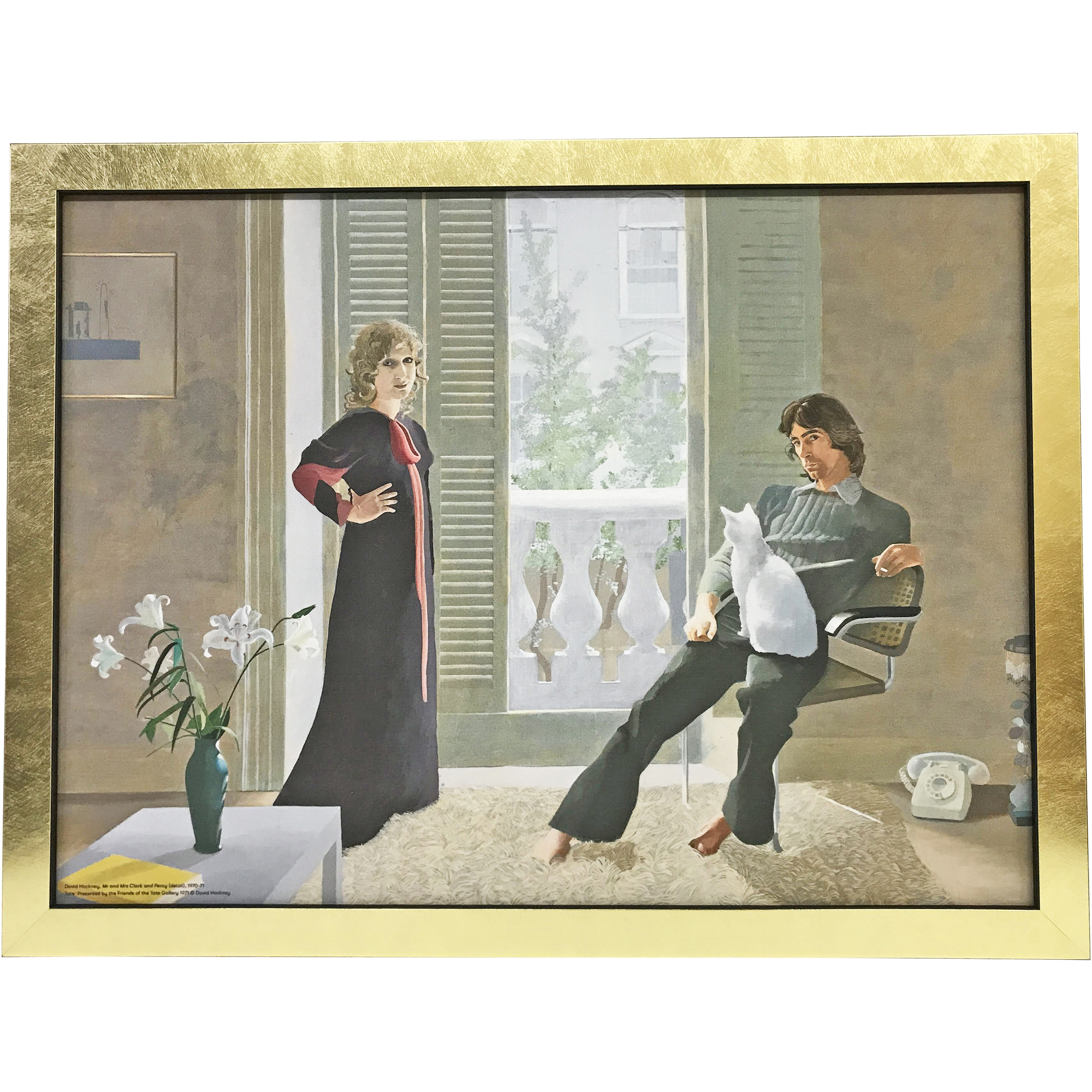 デイヴィッド・ホックニーの「クラーク夫妻とパーシー」。友人であるクラーク夫妻の結婚祝いとして描かれました。現代イギリスを代表する画家、デイヴィッド・ホックニーの代表作です。
