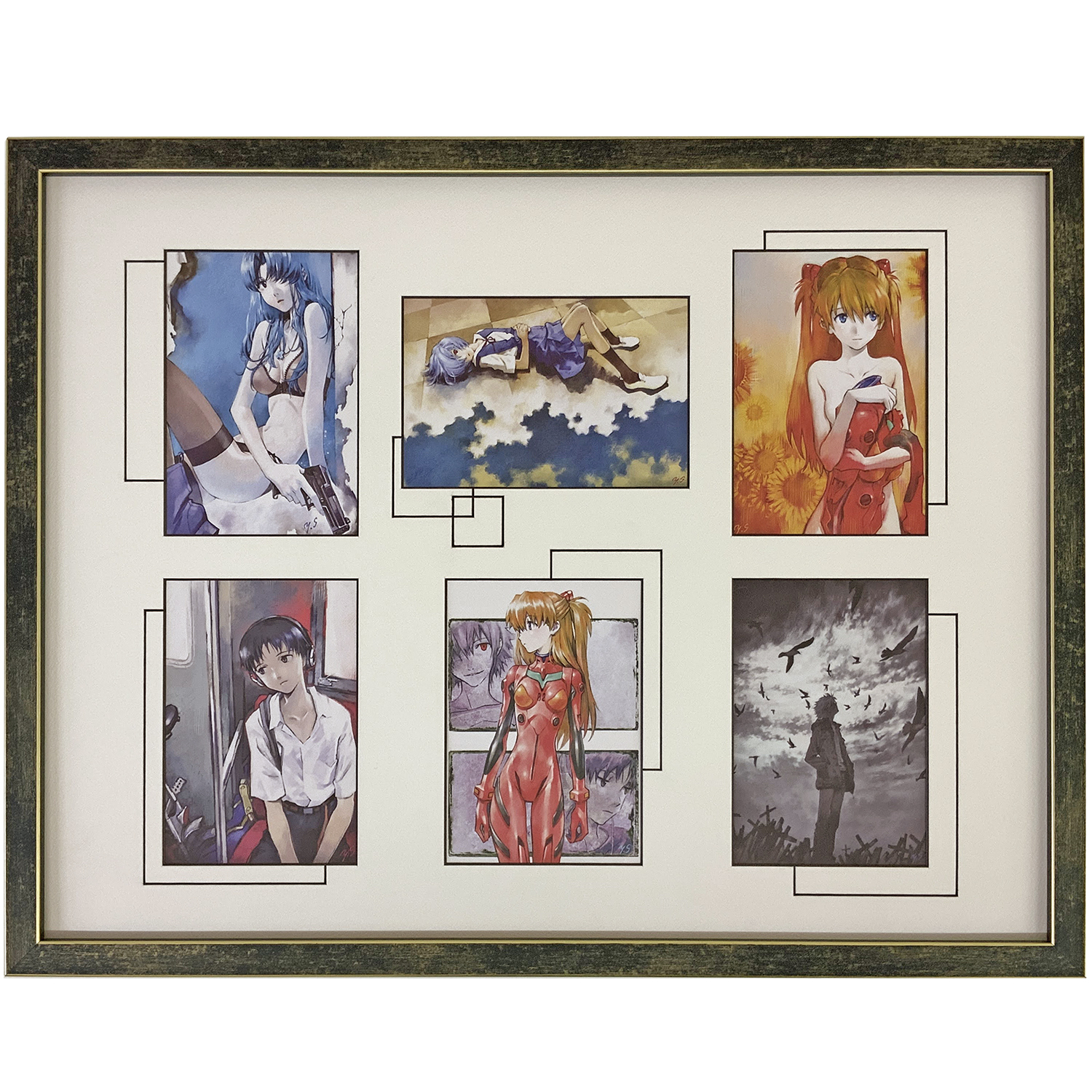 エヴァのポストカード6枚を、1枚の額縁にセットで額装しました