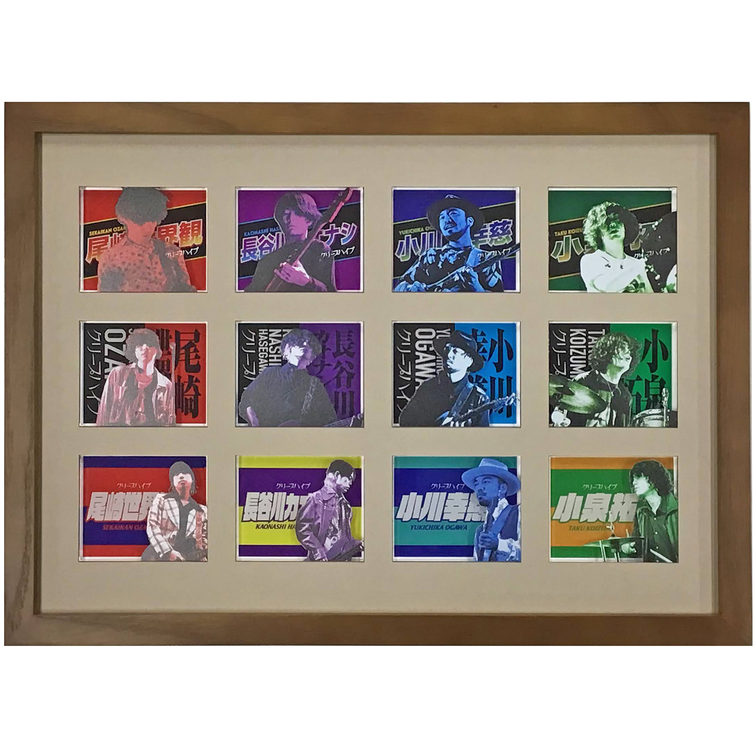 一度聞いたら耳に残り続ける独特の歌詞とメロディーと歌声で、多くのファンを魅了している人気バンド、クリープハイプ(CreepHyp)のグッズを、ファンのお客様からお預かりし、額装させていただきました。彩色が前面と背面に分かれたアクリル素材は、水面を見ているような透明感と不思議な奥行き感があり、デザインは直線的な構成で爽快感があります。