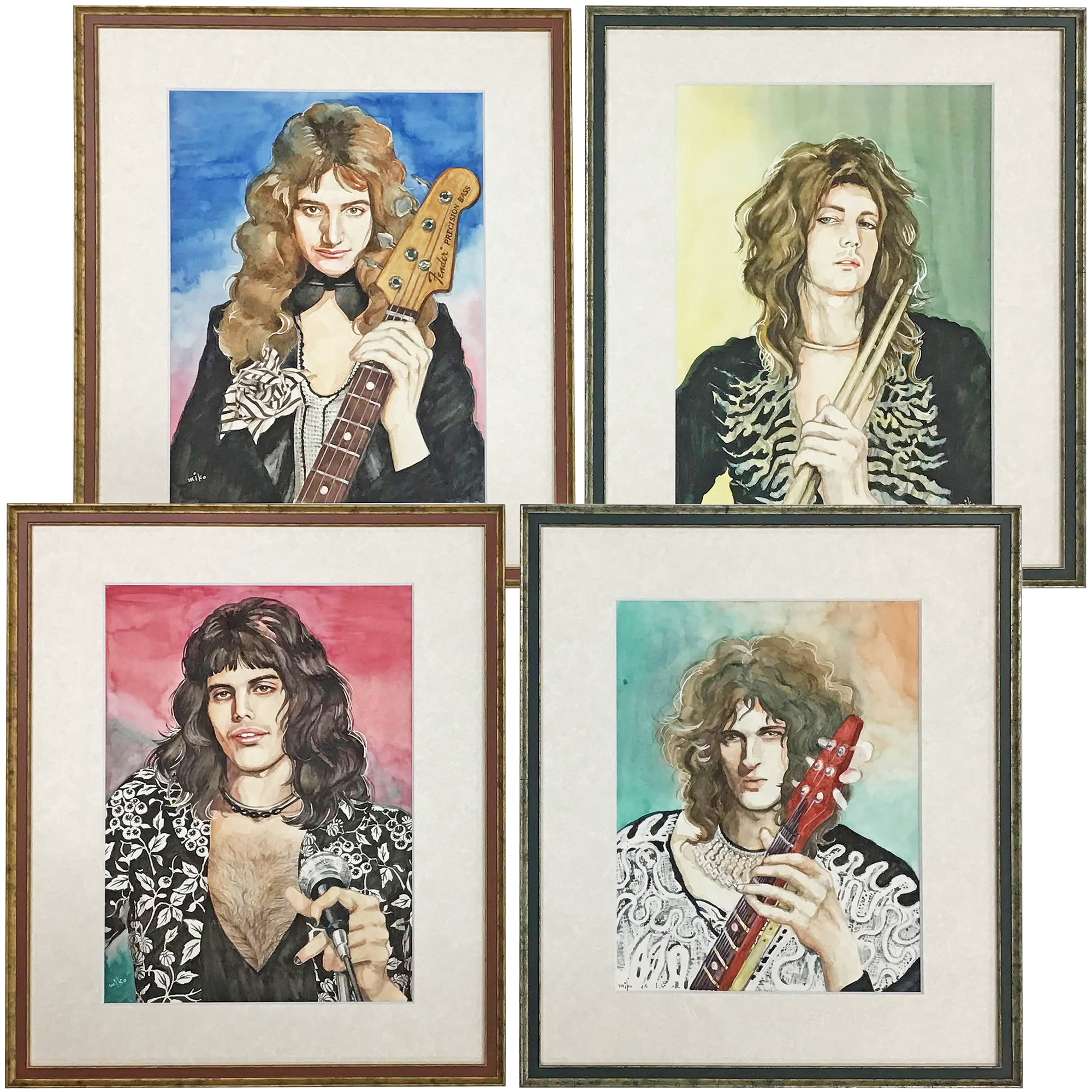水彩画を額装しました。題材は、イギリスを代表するロックバンド「Queen」の皆さん。メンバーひとりひとりが、それぞれの担当するパートに因んだ楽器やマイクを手にした姿で描かれています。皆さん、思わず見入ってしまうような魅力的な表情をされています。