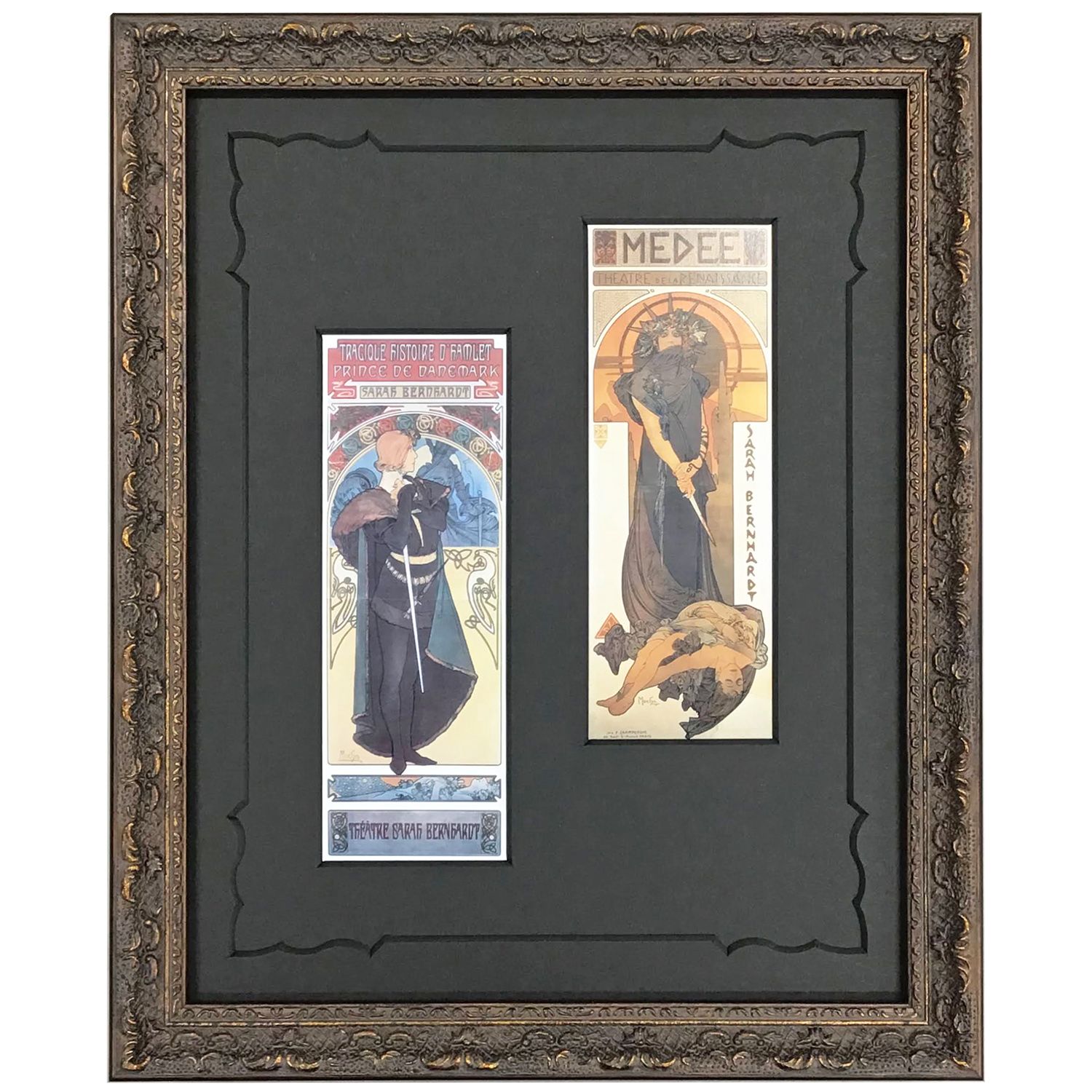 ミュシャの舞台劇のポスターがポストカードになっていたものを、2点組み合わせて額装しました。
