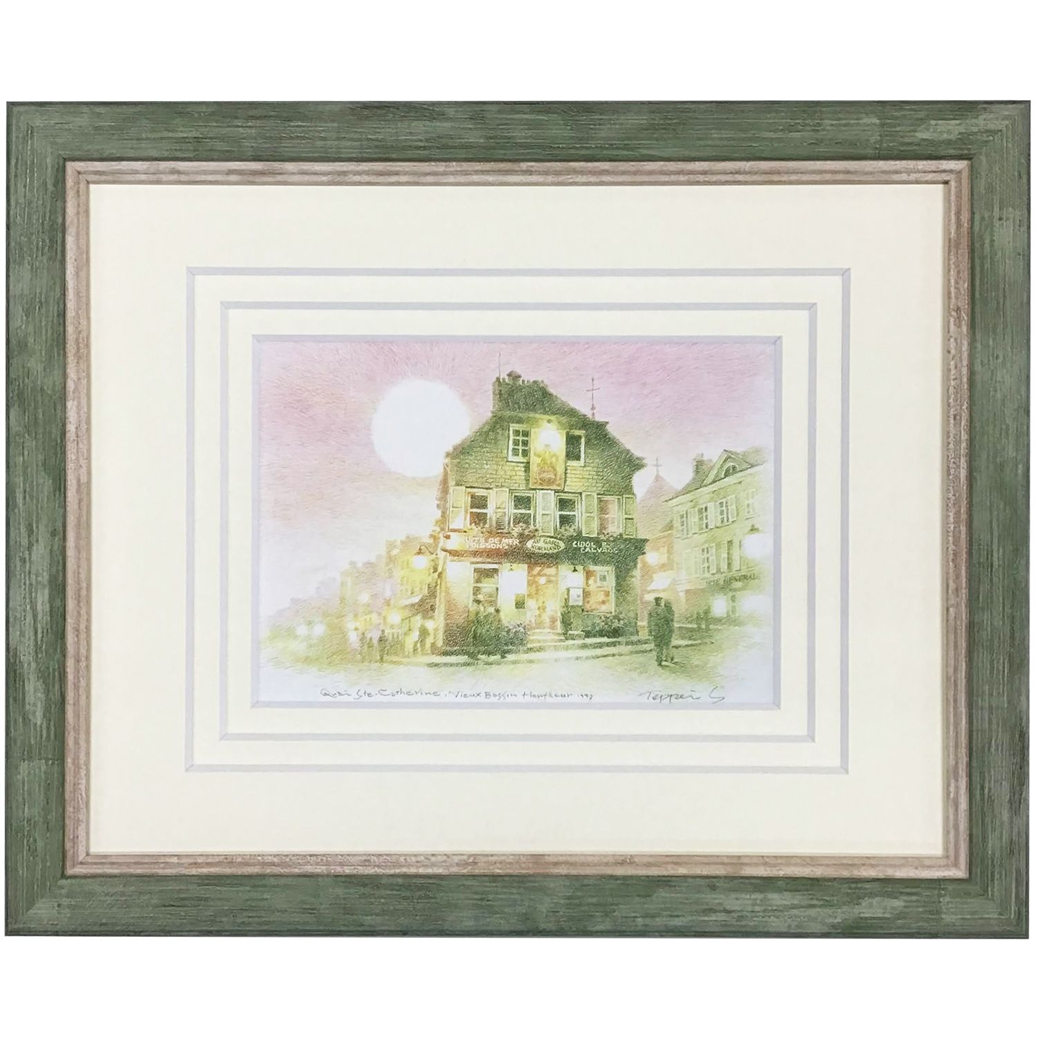 このポストカードに描かれているのはシードル屋さん、発泡酒のお店です。シードルのお酒自体に、淡いピンク色の物もあったりしますし、色鉛筆画のふんわりした空気感がサイダーっぽく、連想してなんだかおいしい気分になれる絵です。