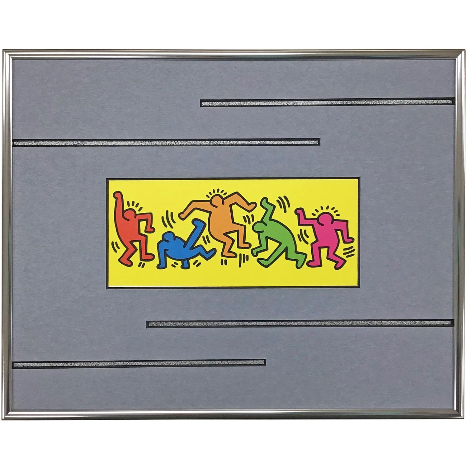 どんなサイズになっても存在感を放つキース・ヘリングの作品は、ポップでカラフル、そして力強いメッセージが魅力です。例えば、落ち着いた色合いで飾りたいときは、ブラックやモノトーンに近い額装がカラフルさを協調できますし、背景色の反対色を使うと強いコントラストが生まれます。周囲をおちつかせその色彩を引き立てるもよし、メリハリをつけてもよし――どんなスタイルでも作品のエネルギーは失われません。