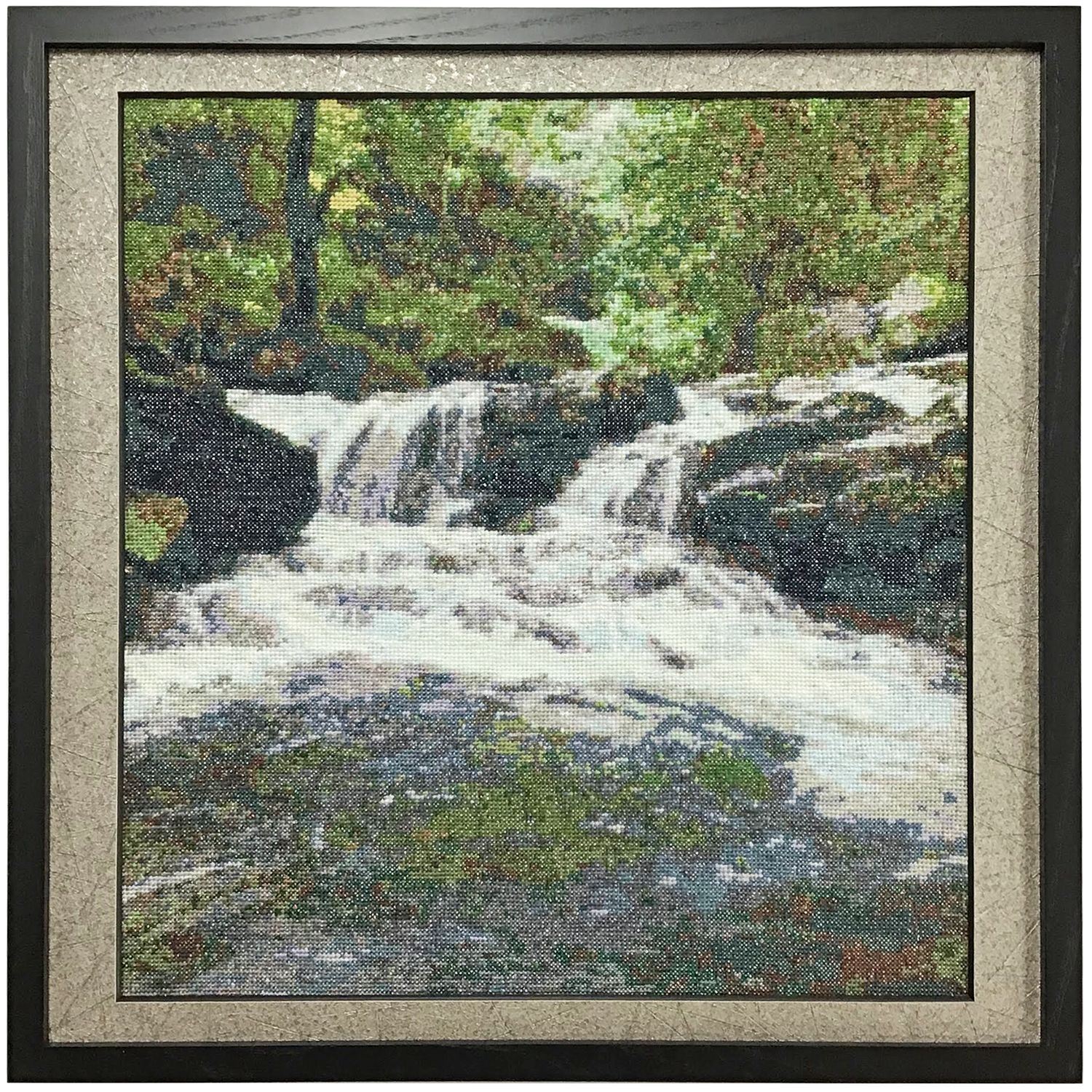 自然の風景が題材になったクロス刺繍を額装いたしました。