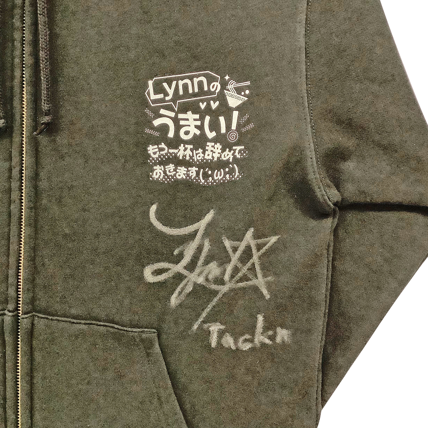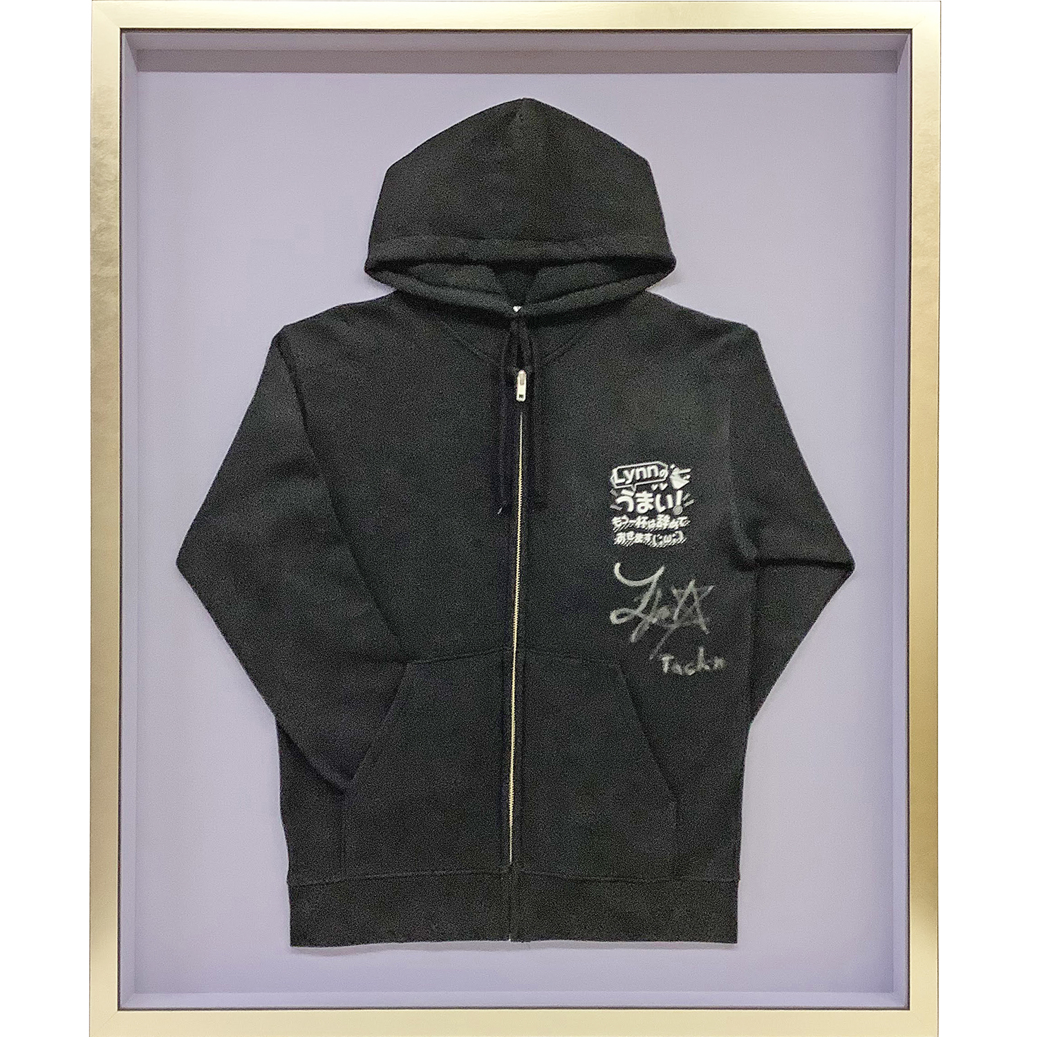らーめん好きとして知られる人気声優、Lynnさんのニコニコチャンネル「Lynnのうまい!もう一杯は辞めておきます(´;ω;`)」から、貴重なサイン入りパーカーの額装です。