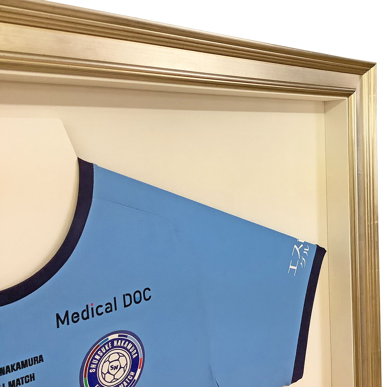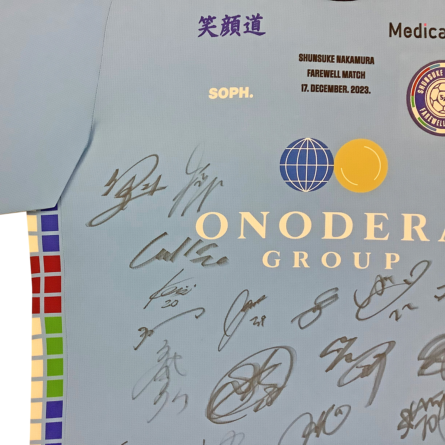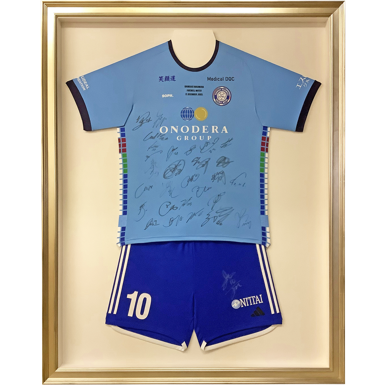 2023年12月17日に開催された元サッカー日本代表、中村俊輔さんの引退試合「SHUNSUKE NAKAMURA FAREWELL MATCH」の記念ユニフォームを額装しました。黄金の左足で数々の伝説を残した稀代のファンタジスタ、中村俊輔氏の集大成を象徴する、ファンにとっても非常に思い入れの深いメモラビリアです。