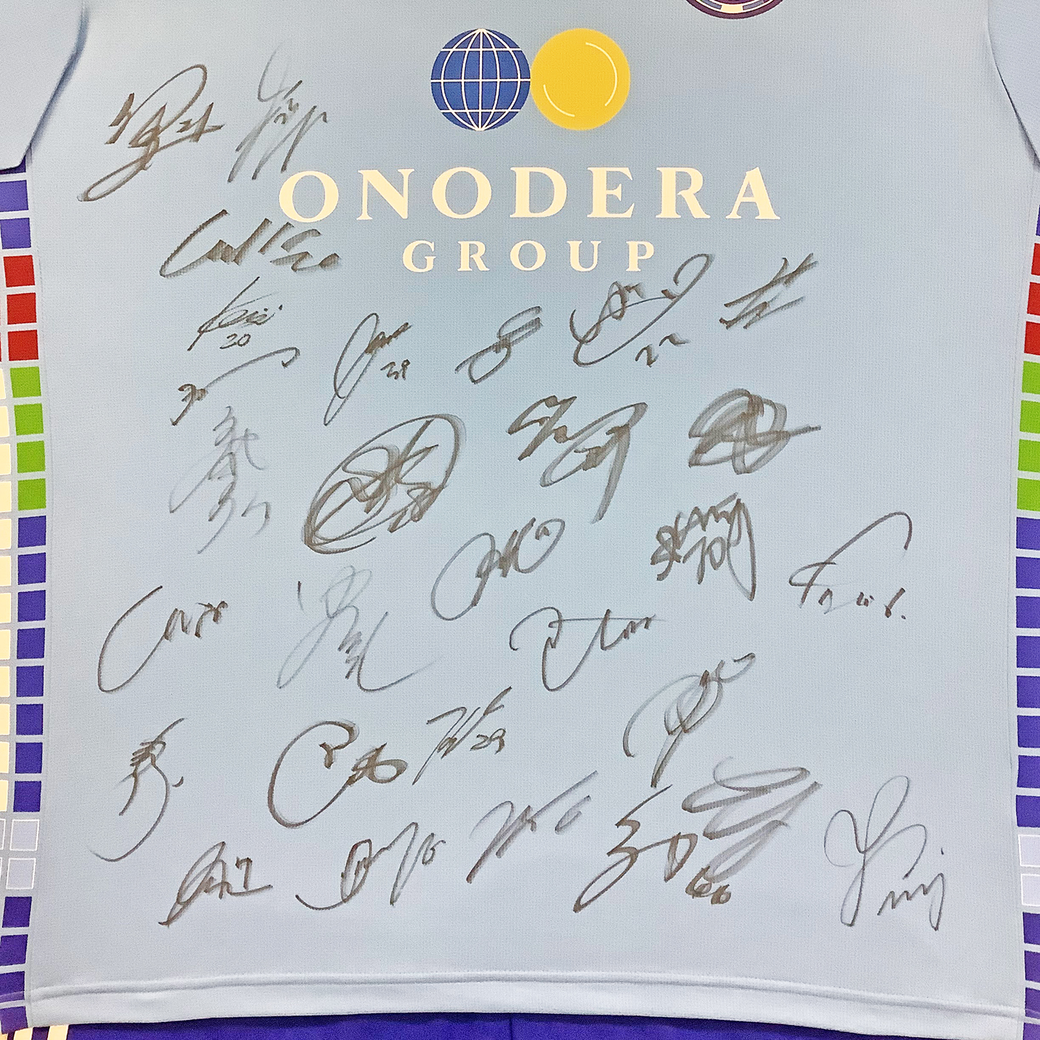 スポーツのユニフォームは上半身だけを飾ることが多くなりますが、こちらのお品物はハーフパンツにもサインが入っています。上下をセットで飾らないわけにはいきません。額縁のタカハシでは、